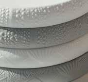 HONORING THE ORIGINS of ingredients is a concept central to culinary approaches ranging from farm-to-fork cuisine to seasonally focused Japanese omakase dining. Hong Kong-based luxury design firm AB Concept and Noritake Design Collection elevate this idea with their inaugural Bangle Collection. The dishes’ form resembles a stack of statement bangles, while the finishes are inspired by nature’s topographies. The first series, Ocean Bangles, drawing from the quiet beauty of life under white-tipped waves, features tubercles from sea urchin tests and ribs and nodes of clamshells.