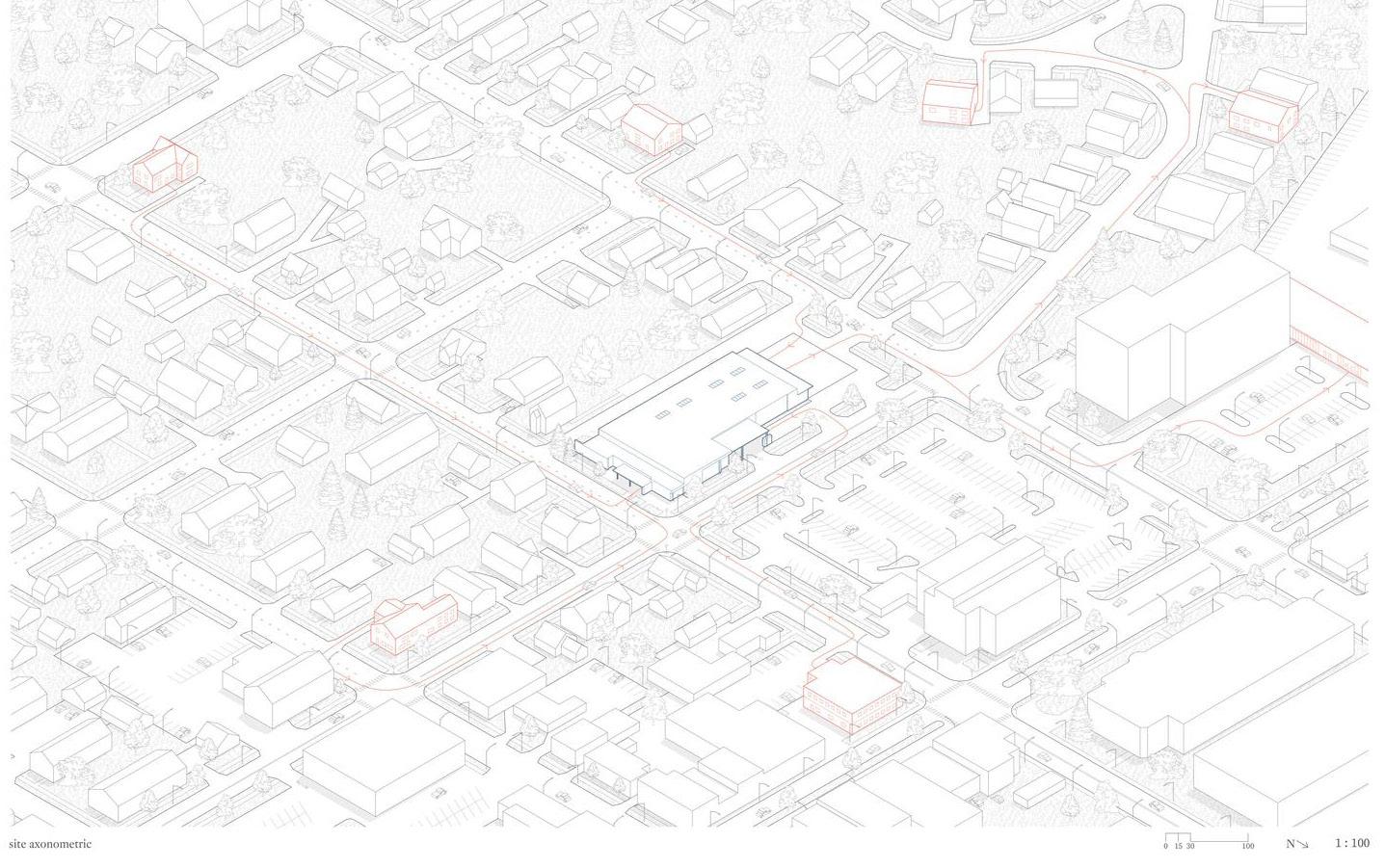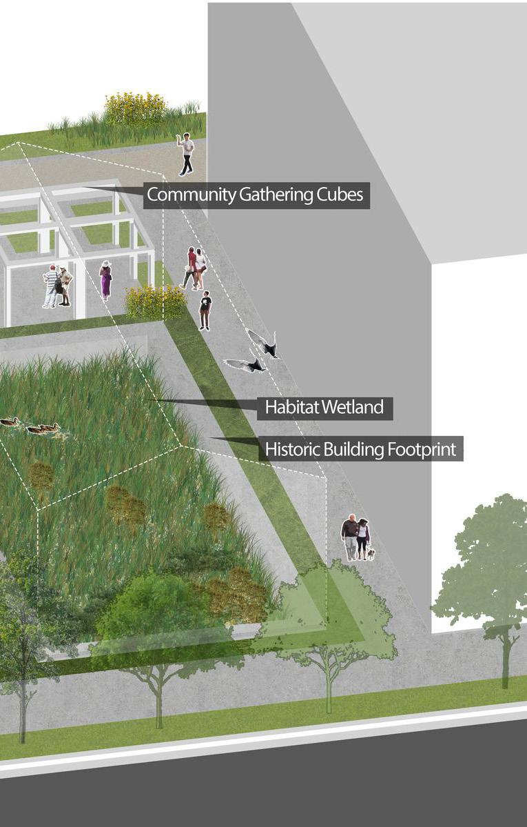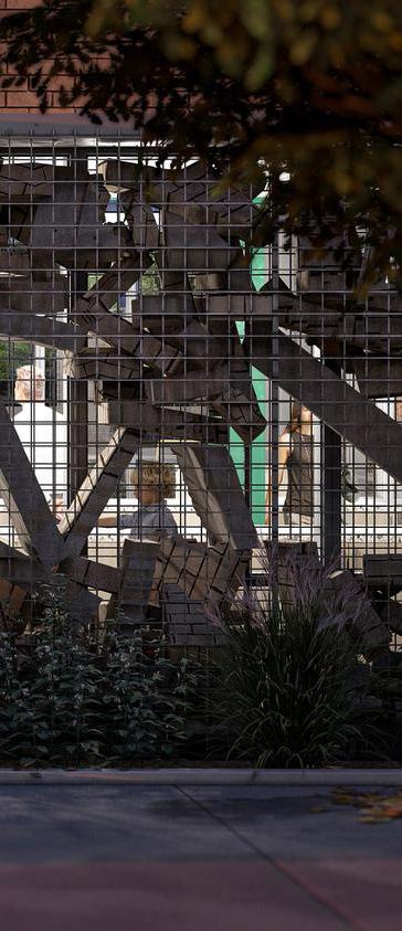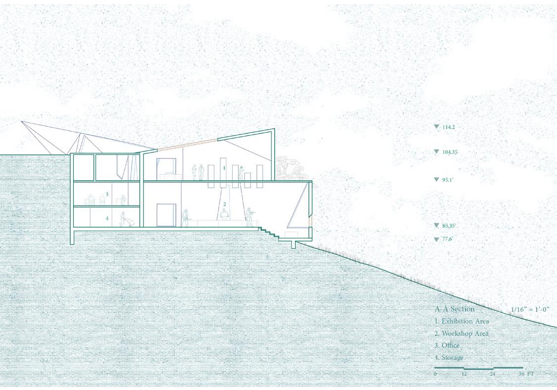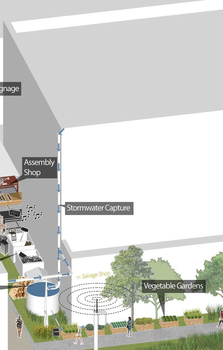 Killing off fish and vegetation, the Huron River’s polluted waters actively prevent a thriving local ecosystem. Drawing inspiration from the resilient nature of Capoeira, the active motion of the “Jinga”, and the sport’s natural reliance on community, nature, and storytelling, a proposed fieldhouse envisions the ionization of algae-infested tides. By harnessing the power of constant motion of the dance— a constant fight and an ongoing history, Pavogen tiles allow for Capoeristas to convert their kinetic energy into a physical purification system filtering Huron River water into a pond, allowing for irrigation, offering safe drinking water, and a builtaround community center.
