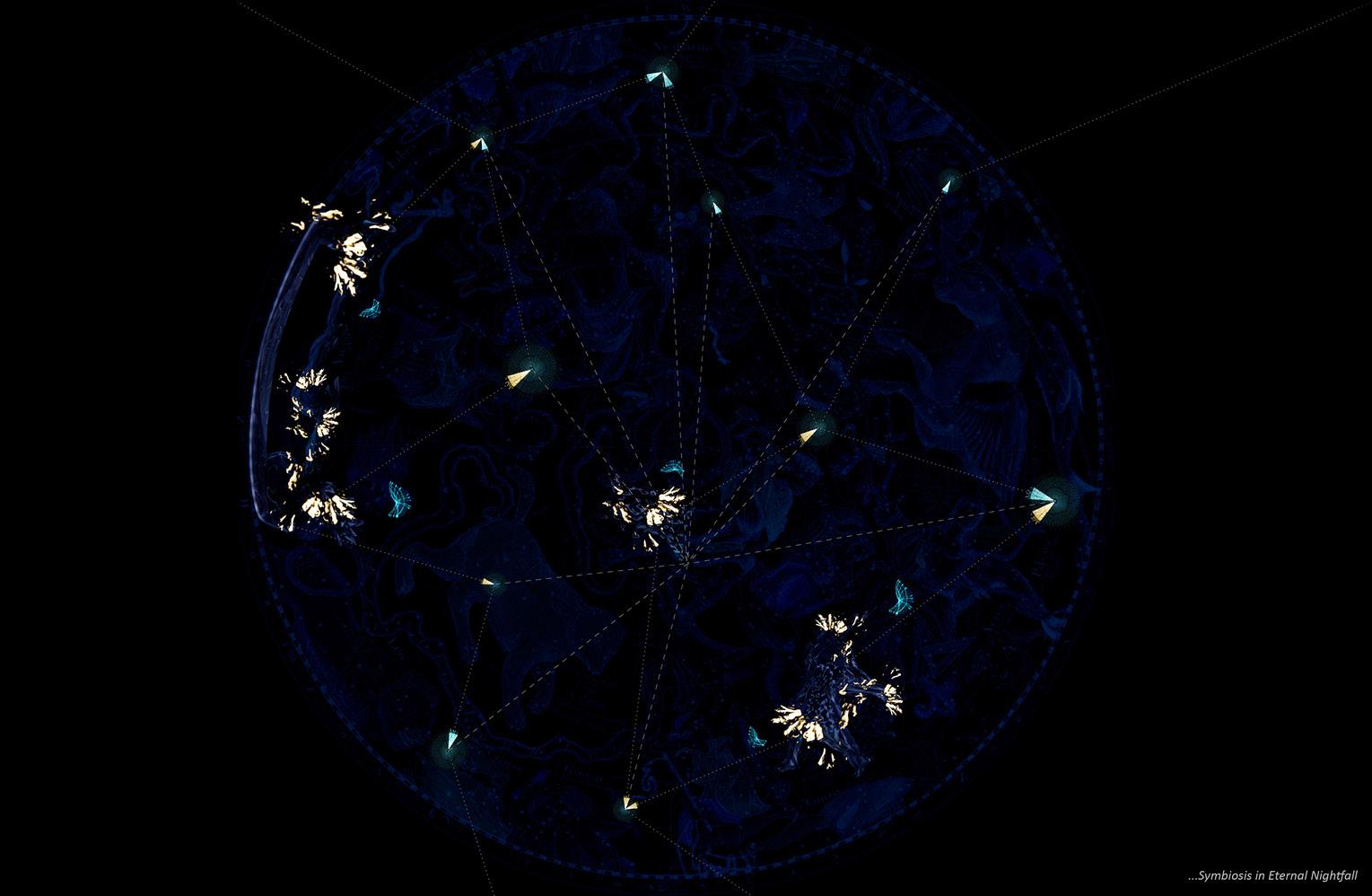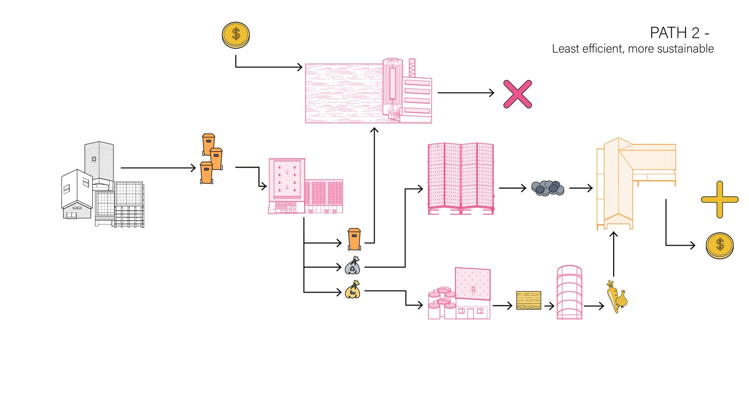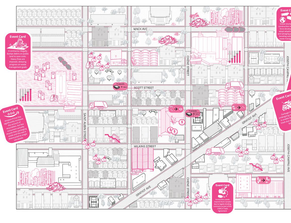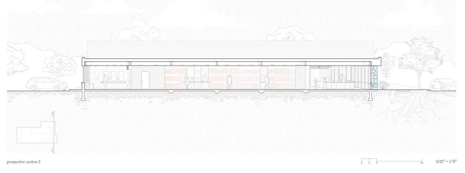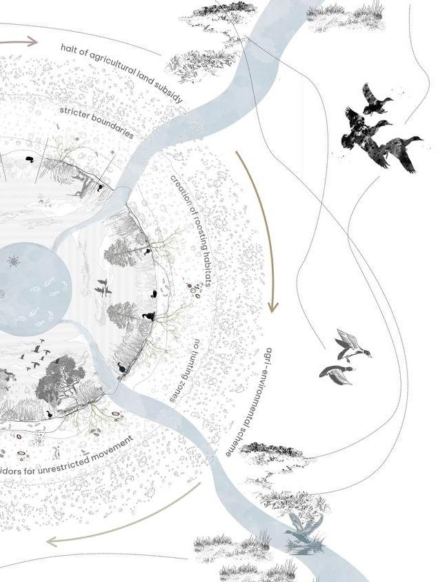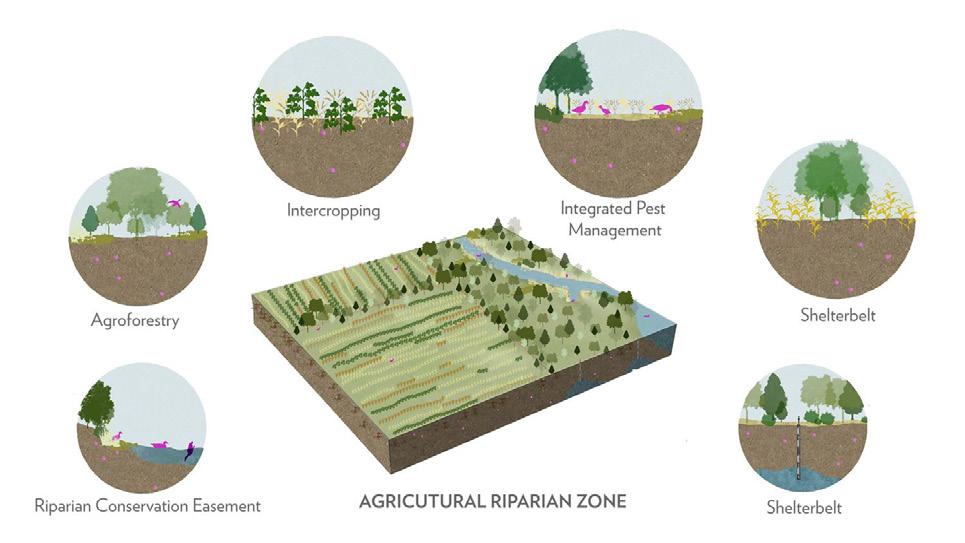 Becoming Biomass is a speculative design research project that envisions a future cooperativemanaged agroforestry and biomanufacturing transformation in the Tennessee Valley region toward decarbonization and regenerative coexistence. The project deploys methods of narrative and scenario-based world building to depict a multiscalar and multi-system future for the region and its human and nonhuman constituents. It is situated in the context of justiceoriented decarbonization that involves dismantling carbonbased material economies through new organizations, collaborations, infrastructures, landscapes, and architectures. The speculative proposition is informed by research in biomaterial science, sustainable agroforestry, biogenic architectures, and a new vision for industrial architecture. Critical drawings such as actor networks, thick cartographies, notational scores, deep sections, and scroll drawings accompany narrative videos and analytical physical models. The project was commissioned by the University of Tennessee and exhibited at the Regional Globalism in the Tennessee Valley exhibition the Ewing Gallery in November 2024. A book publication is forthcoming.