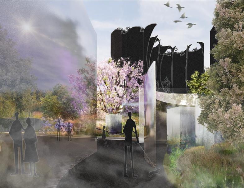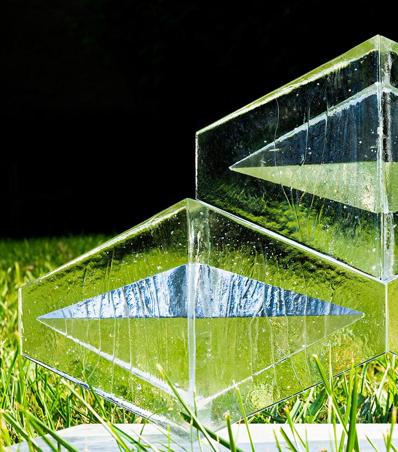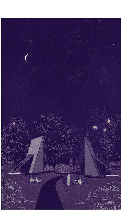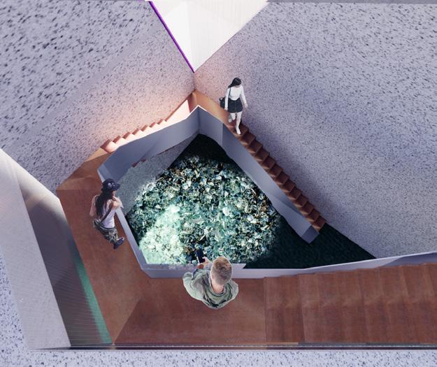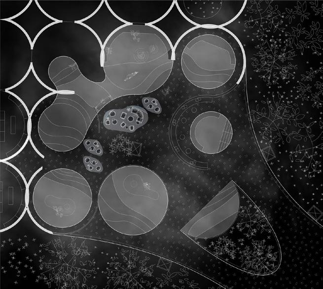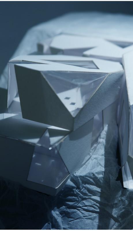 Light Forms is a comprehensive glass block system aimed at creating site-specific architectural structures that utilize threedimensional forms studied for light transmission and structural performance. Able to be tessellated in various patterns, Light Forms create spaces that connect passively to the natural shifts of day and night. Sunlight and moonlight are essential to our well-being as humans, providing a critical connection to our location on the planet and to our circadian rhythms. This system prompts people to live more closely with diurnal rhythms by foregrounding passive light and darkness instead electrified and artificial interior environments. The accumulations of glass hold powerful, awe-inspiring light and spatial characteristics, in addition to performing well in compression and reducing the need for numerous materials within the envelope. Still further, when strategically assembled, it is 100% reusable and recyclable. The shifting qualities of light and dark in the natural environment will prismatically transmit within architectural spaces built using Light Forms, encouraging one’s embodied experience to connect with the present moment and the natural environment they exist within, encouraging environmental stewardship and care.