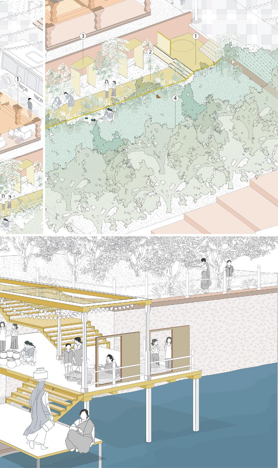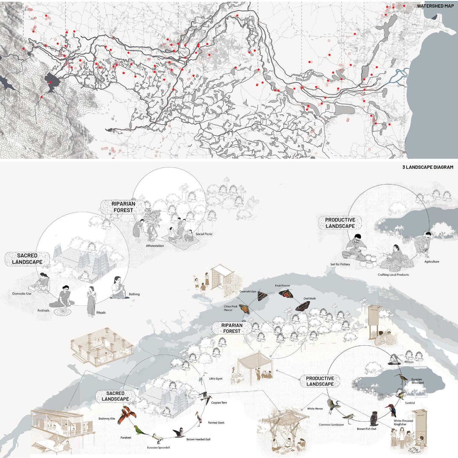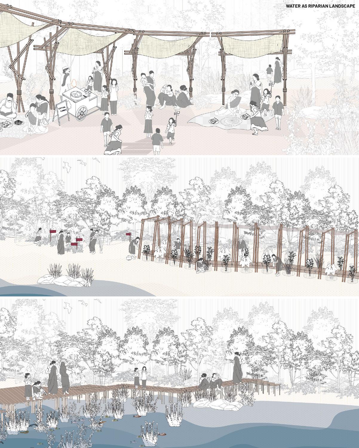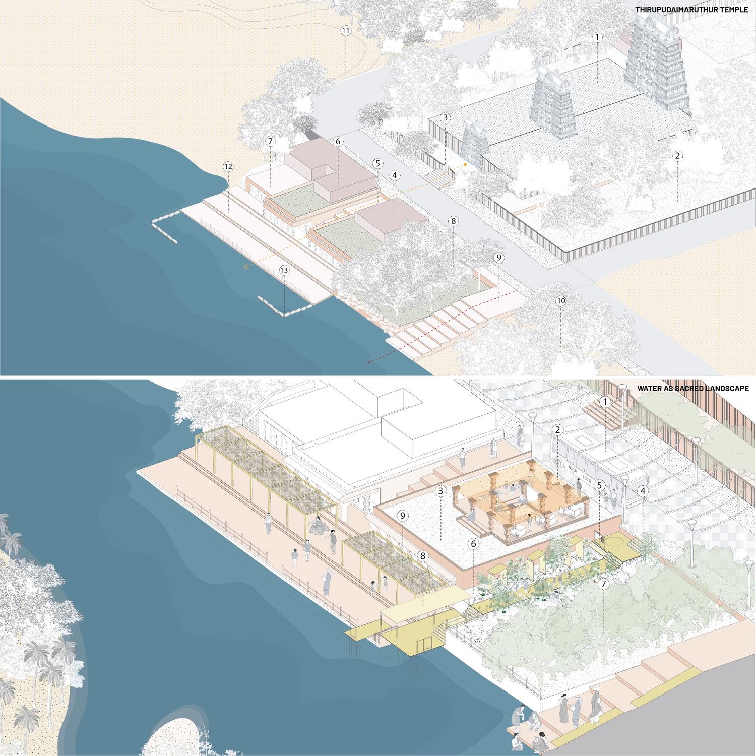 Nestled along the sacred banks of the river Tamirabarani, Water Memories is a tribute to the deep connection between water, people, and nature. The interpretative and interactive components are designed to celebrate the river’s cultural, spiritual, and ecological significance, bringing its presence back into everyday life. Through thoughtfully crafted landscapes, these create spaces for reflection and interaction while adapting to the river’s natural rhythms with sustainable, locally sourced materials. More than just a design, this project honors water as a living entity— one that nurtures, sustains, and connects all beings, inviting everyone to pause, appreciate, and cherish its timeless flow.