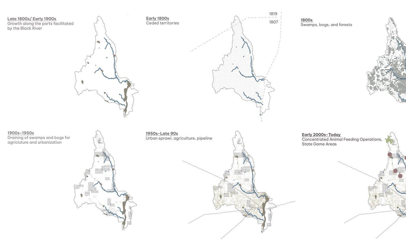 This project investigates collaborative approaches to implementing large Naturebased Solutions (NbS) over gray infrastructure to address flooding mitigation and steward regional biodiversity, recreational opportunities, and community wellbeing in Southeast Michigan. The project integrates a suite of tools, including financial assessments, complex infrastructure modeling, mapping, visualization, regional transect studies, and wildlife habitat assessment. It develops a datainformed method for NbS siting assessment, prototypical NbS approaches (stream daylighting, wetland creation, and riparian buffers), and co-production tools.