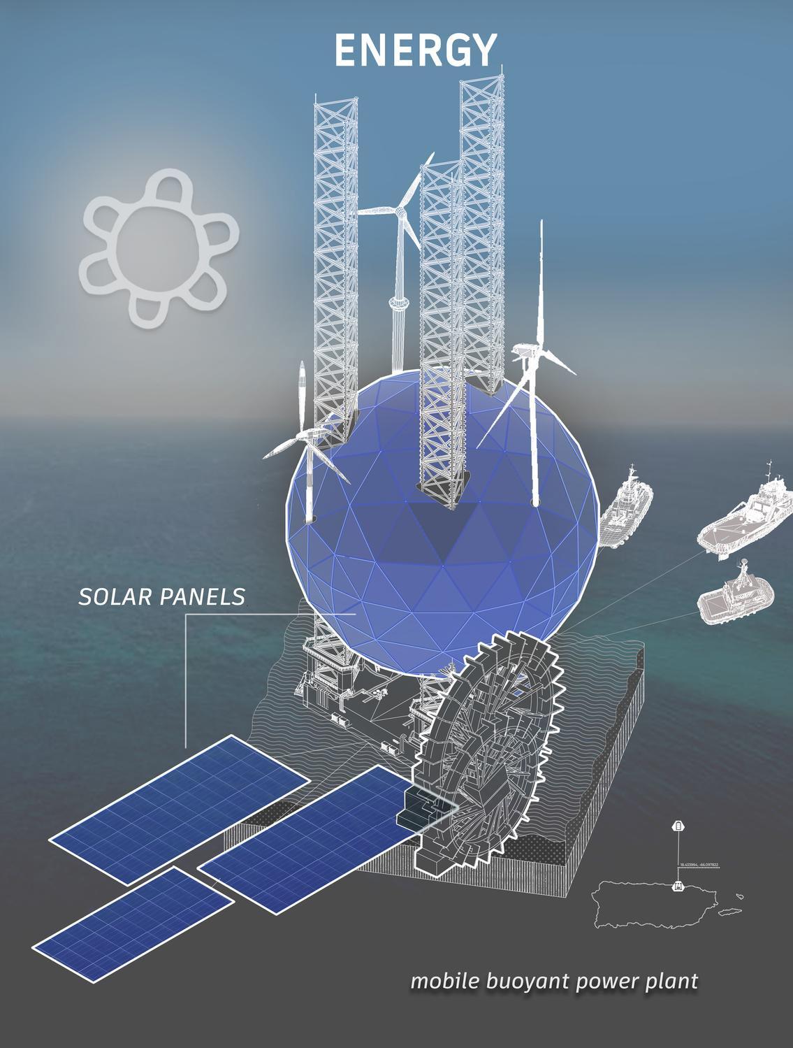 From rising sea levels to increasingly severe weather patterns, islands are disproportionately vulnerable to natural disasters. The economies, livelihoods, and cultures of these islands are under existential threat. As oceans heat up, hurricanes are predicted to gain more power, reaching wind speeds of up to 200 miles per hour plus. The Maldives, for example—are at risk of becoming completely flooded by 2100. My proposition is to unify all islands through an environmental alliance. The major assets of this alliance would take the form of mobile rigs that could be deployed throughout the globe to provide humanitarian and environmental assistance during natural disasters. In response to any energy, hospital, or housing dilemma, these mobile operating centers enable the alliance to flexibly respond to multiple crises.
