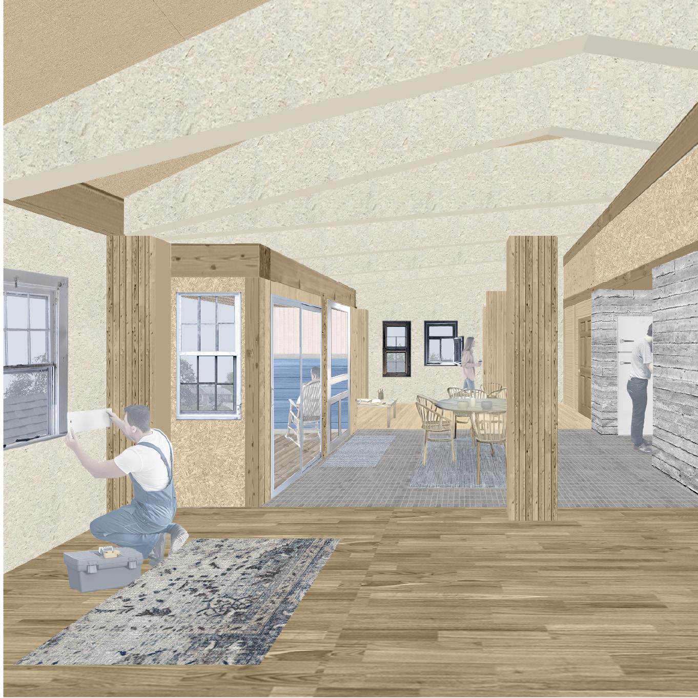 To respond to these concerns, four case study houses were designed on four different sites—these sites vary in size, soil conditions, and grades, and were selected to investigate a wide range of climatic challenges along the Great Lakes coasts of Michigan. While the house designs are specific, each building system is sufficiently flexible to maintain the unique architectural identity of existing communities by dep loying regionally available construction practices.