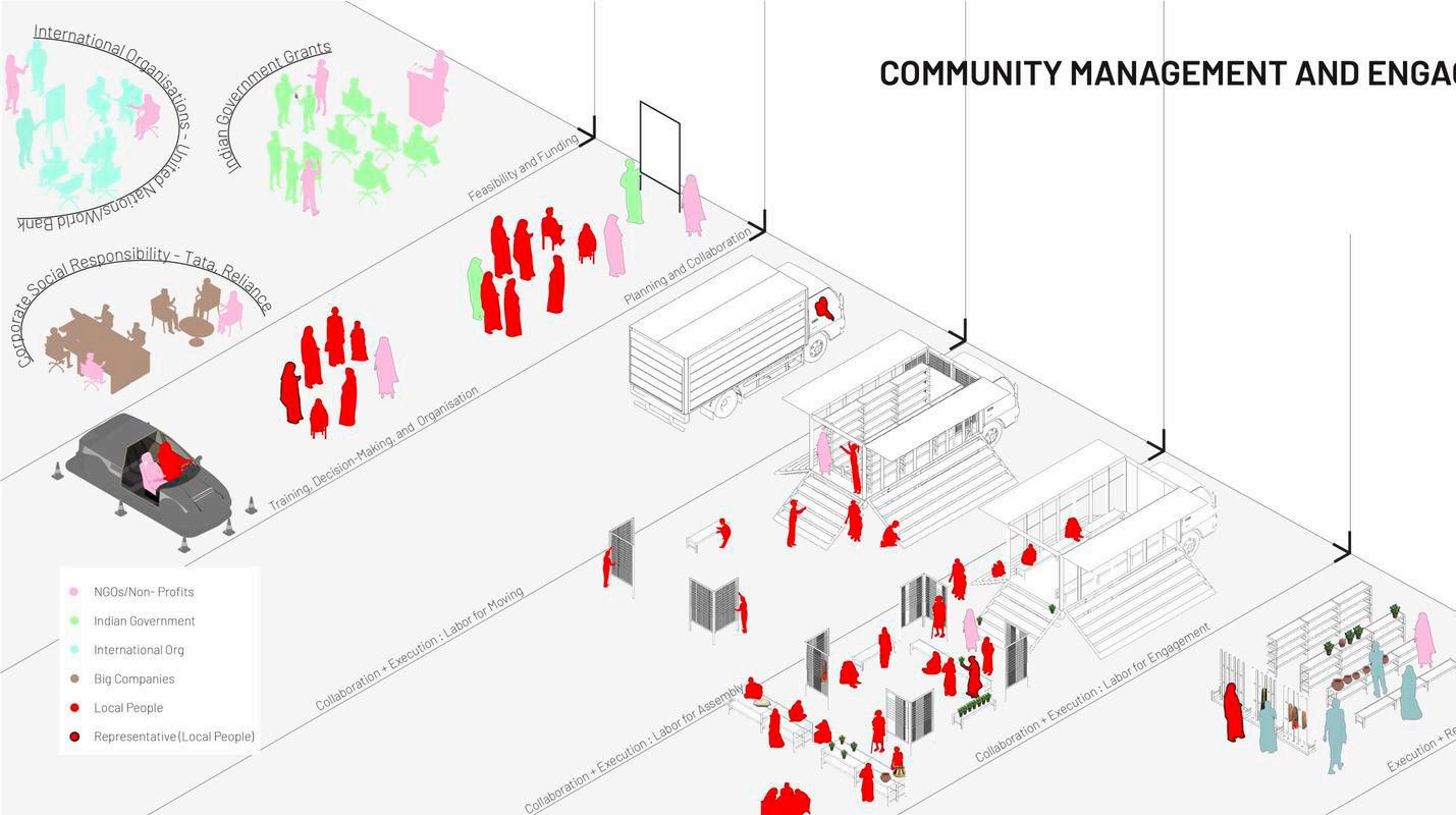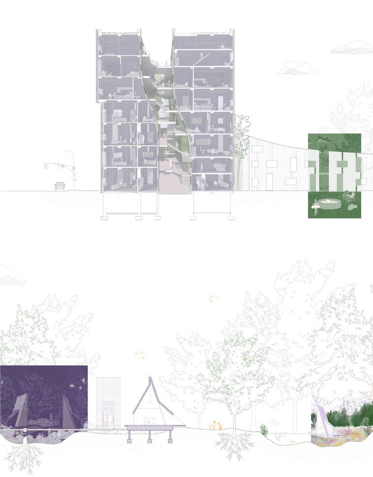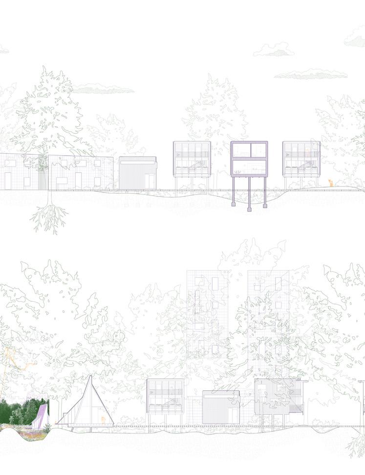 This joint MArch+MUD studio section collaborated with the Ashoka Trust for Research in Ecology and the Environment (ATREE), a nonprofit organization committed to environmental education and the co-production of communitybased socioecological knowledge. We traveled to the Agasthyamalai Community Conservation Centre to conduct field work with ATREE, documenting onsite conditions. Building on different aspects of ATREE’s regional socioecological work, students co-developed a series of design strategies for an interpretation and landscape observatory contributing to the ongoing investigation of a regional eco-tourism initiative.