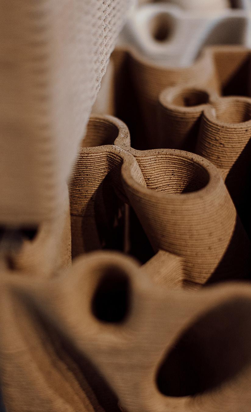 This project explores how 3D printed (3DP) ceramic facades can enable climate adaptation and resilience by collecting, retaining, and controlling release of stormwater. It advocates a paradigm shift for the building envelope, away from the conventional “rain screen” notion that facades must repel and shed water off the building, to one that directly engages and manages water in ways that benefit broader infrastructural and ecological systems that are vulnerable to the impacts of climate change. The research explores how modular 3DP ceramic components can absorb and delay runoff. The work operates at three interrelated scales—the micro (material), the meso (component), and the macro (aggregated assembly)— to develop an integrated understanding of how material performance and the design of modular systems can beneficially interface with buildings, landscapes, and other stormwater infrastructures.