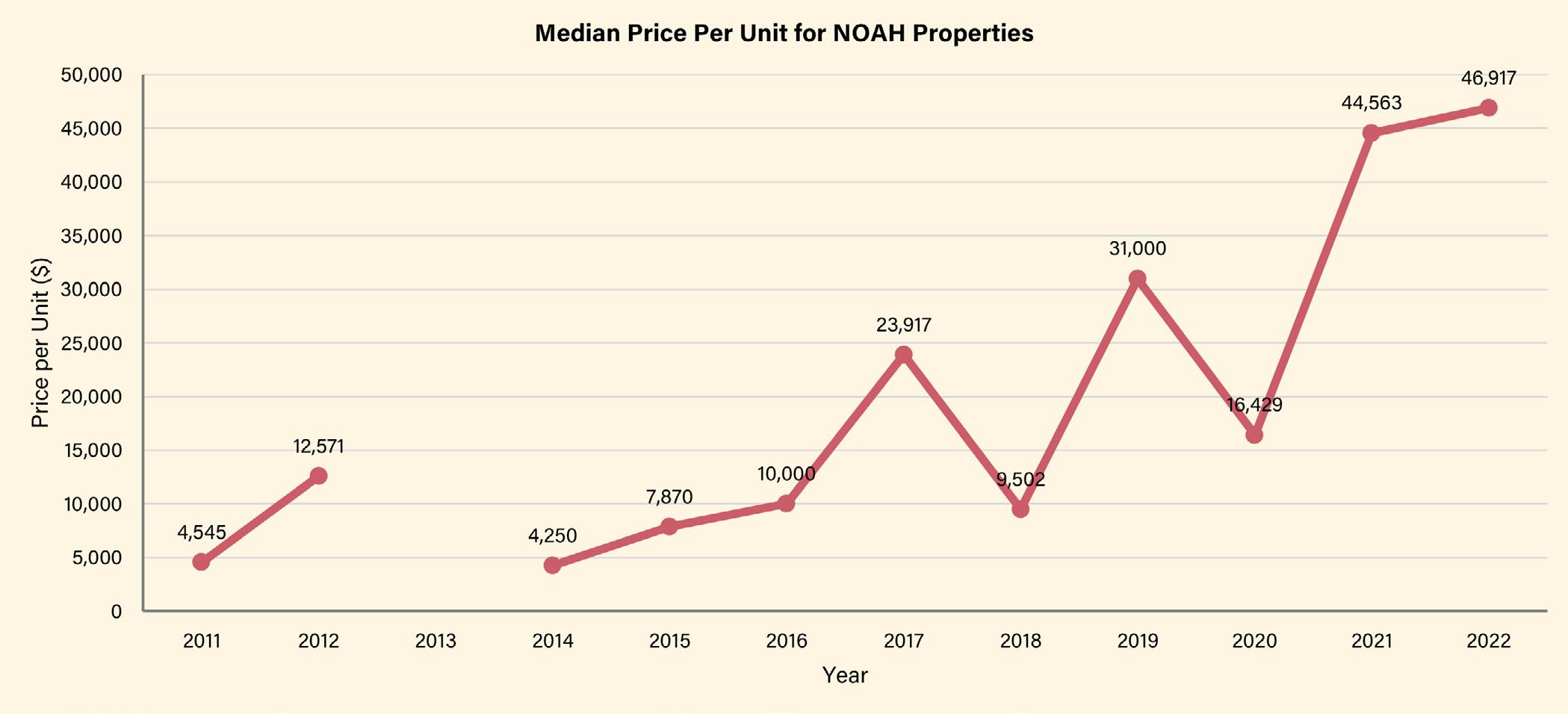 Figure D1: Median price per unit for small multi-family NOAH properties in Oakman Boulevard neighborhood