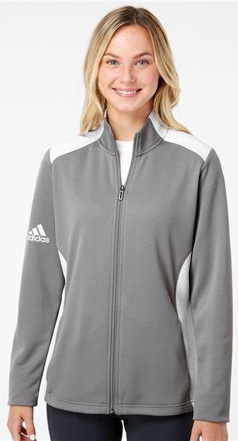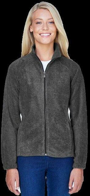 Full-zip front closure and a straight hemline. Moisture wicking and quick drying. Durable knit fabric with a bonded micro-fleece interior