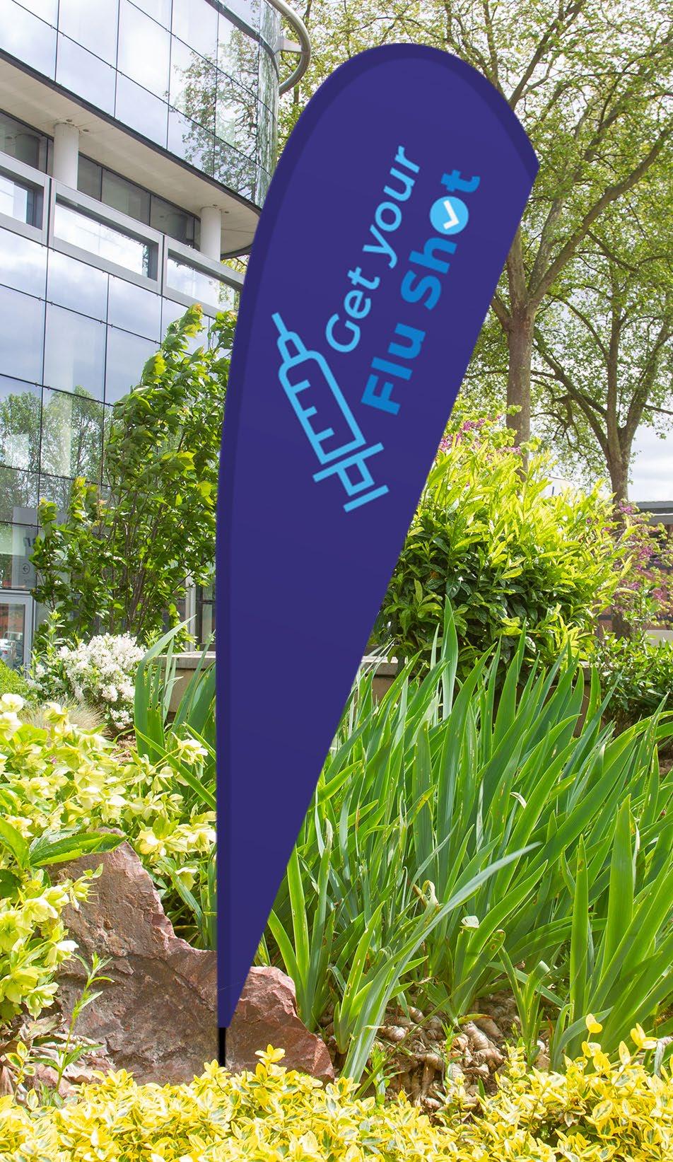 The V-Flag is an eye-catching display that can be used indoors or out.