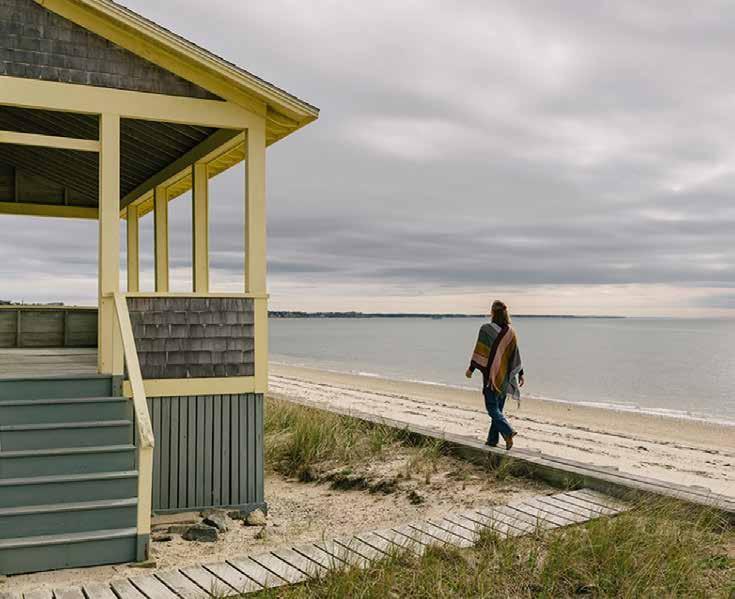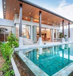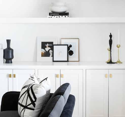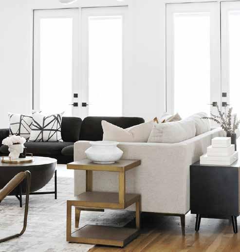 For Curtis, true elegance is in the nuance. “[Styling is] not a detail; it’s a major element,” she says. Its im portance is on display in the oversize pendants hanging from the ceiling, capped with a small marble ball; the structural side tables with open edges that simulate a current; and the subtlety of the mixed metal tones throughout. “You don’t often see that level of simplicity that Ashley really gravitates to, so I think that it’s much more unique and much more pared back,” Curtis says of the details. “It’s really a lessis-more concept, so that every piece becomes so much more intentional.” It all comes together to create the “spa cious, airy, and open” living room that embodies Curtis’s signature approach, landing with ease in that precarious space between too much and not enough. The same monochromatic, elegant simplicity is mirrored through out the home with no bad angles.