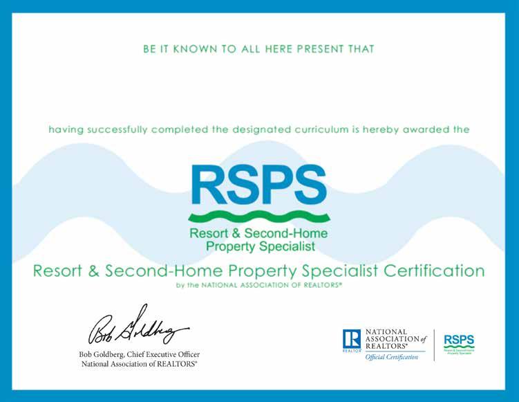 RSPS is recognized as an official NAR Certification, and allows buyers and sellers to have confidence in the ability of a REALTOR® who specializes in buying, selling or management of properties for investment, development, retirement, or second homes in a resort, recreational and/or vacation destination, to assist them with their search.