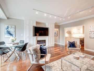 between the two rooms, which made it easy for Curtis to blend the open floor plan. She further connected the distinct spaces with a uniform color palette and materials. “The thought is creating a sense of cohesiveness,” she says. “You don’t want it to be jarring from the flow of the kitchen to the living room.”