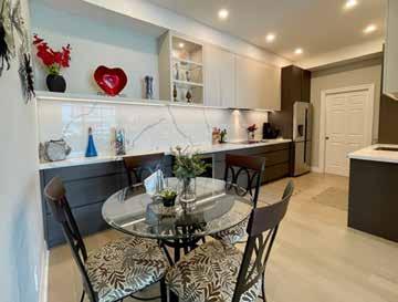 Coryn Kempster (centre) gets to know guests at a Husmates social event about co-owning. Photo suppliedSOPHISTICATED LAKESIDE CHARM! Rarely available and exceptionally upgraded, this elegant 2 bedroom suite in The Regat ta has it all! This well-appointed condo features a spacious 1314 sq ft floor plan, ideal for today’s modern living. The impressive living and dining room space allows for all your entertaining needs, featuring stunning custom cabinetry creating a lovely niche for the built-in electric fireplace and TV, crown moulding, exquisite hardwood floors, track and pot lighting, and walkout to the balcony. The gourmet kitchen includes stainless steel appliances, granite countertops, tile backsplash, undermount lighting, stainless steel double sink, breakfast bar and additional built-in pantry/storage space. The primary bedroom features his and hers closets and a luxurious 4 piece ensuite with marble flooring, built-in floor to ceiling cabinetry, floating vanity and a gor geous, large glass shower with a fabulous rain shower head and bench.