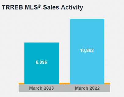 GTA REALTORS® reported 6,896 sales through TRREB’s MLS® System in March 2023 – down 36.5 per cent compared to March 2022. On a month-over-month basis, actual and seasonally adjusted sales were up. New listings were also down on a year-over-year basis, but by a much greater annual rate. This points to tighter market conditions compared to last year.
