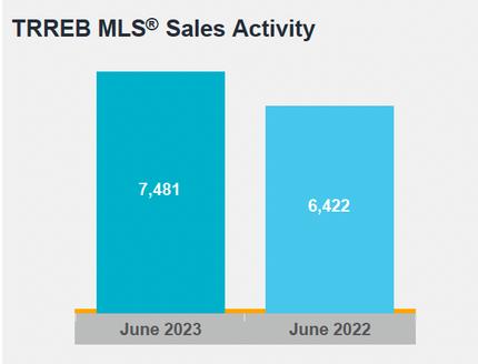 GTA REALTORS® reported 7,481 sales through TRREB’s MLS® System in June 2023 – up 16.5 per cent compared to June 2022. The number of listings was down by three per cent over the same period.