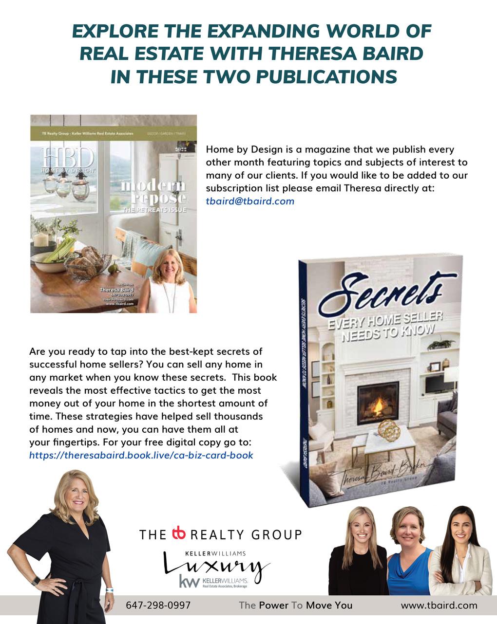 At the TB Realty Group, we take great pride in being a dedicated group of professional realtors who strive to deliver the best possible service to our clients. Our team is passionate about inspiring and sharing the lifestyle that comes along with buying or selling a property, regardless of price point. With decades of combined real estate experience, we have the knowledge and expertise to provide exceptional representation and expert negotiation, all while building the long-lasting relationships and trusted partnerships that set us apart.