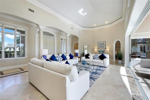 As you enter this beautiful estate home, the open floor plan unfolds throughout the rear of the house and welcomes you to a spectacular golf course view.