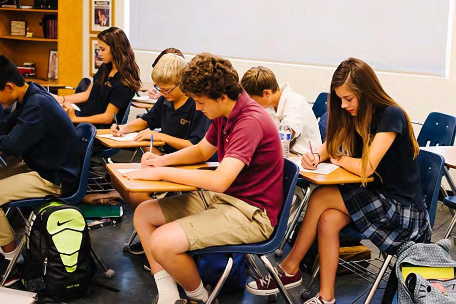 At this pivotal stage, our faith-integrated curriculum supports students spiritually, academically, athletically, and socially. Classes are designed to stretch students' abilities in critical thinking, creativity, and collaboration, honing their skills to become exceptional communicators. We enrich the academic experience with a diverse range of extracurricular opportunities and activities. Students can explore their interests and talents through athletics, elective courses, clubs, and theater productions, complemented by engaging field trips. This dynamic blend of learning and extracurricular involvement prepares students for high school and beyond, fostering a wellrounded student.