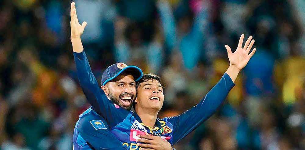 Sri Lanka’s Dunith Wellalage (right) took a career-best 5-27