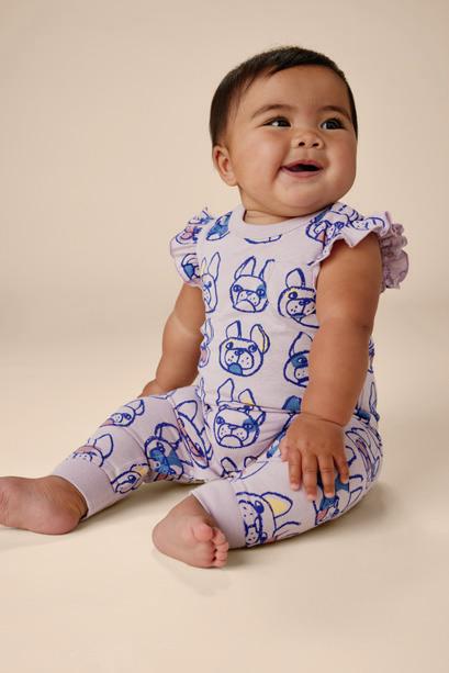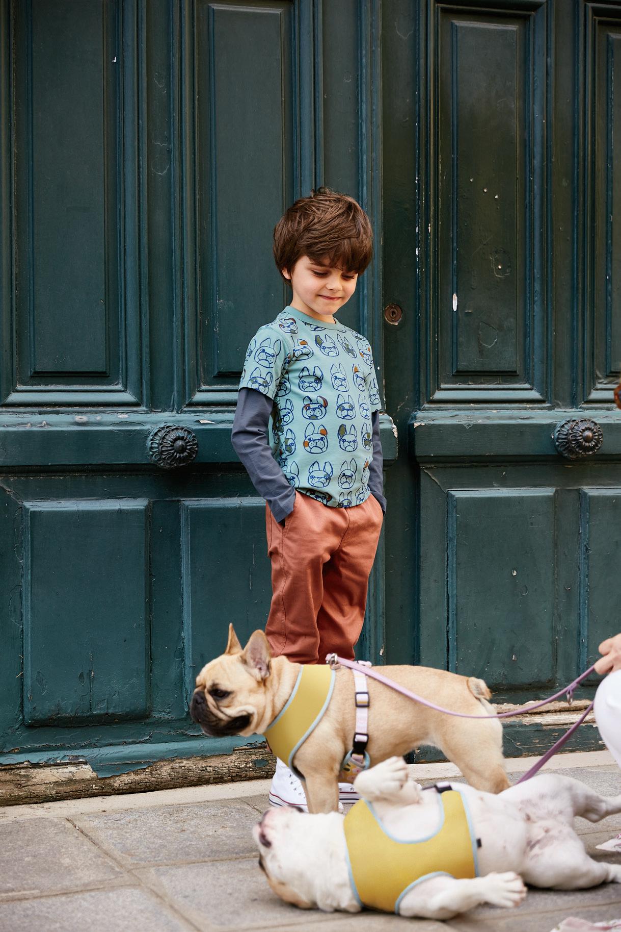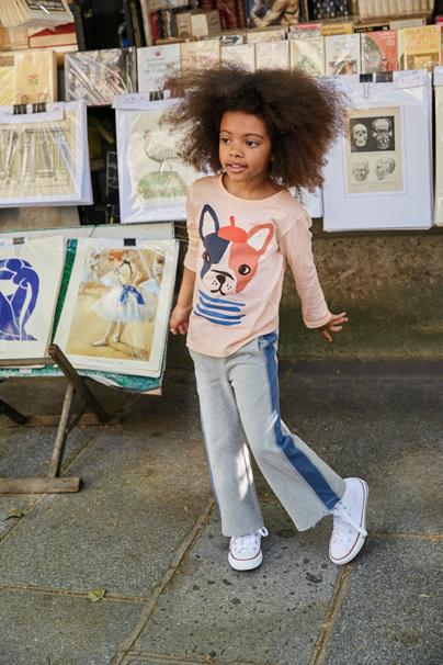 23 F, G C, D E H A. Printed Layered Sleeve Tee $35 23F22165 2–12 B. Timeless Stretch Twill Pants $45 23F23200 2–16 C. Very French Bulldog Graphic Tee $29 23F12102 3–6M thru 16 D. Side Stripe Pocket Flare Pants $45 23F12203 2–16 E. Pocket Flutter Baby Romper $29 23F32504 0–3M thru 18–24M F. Frenchie Layered Sleeve Graphic Tee $35 23F22105 2–16 G. French Terry Playwear Pants $42 5S22204 2–16 H. Pocket Baby Romper $29 23F42501 0–3M thru 18–24M all items shown are imported Say “wouf