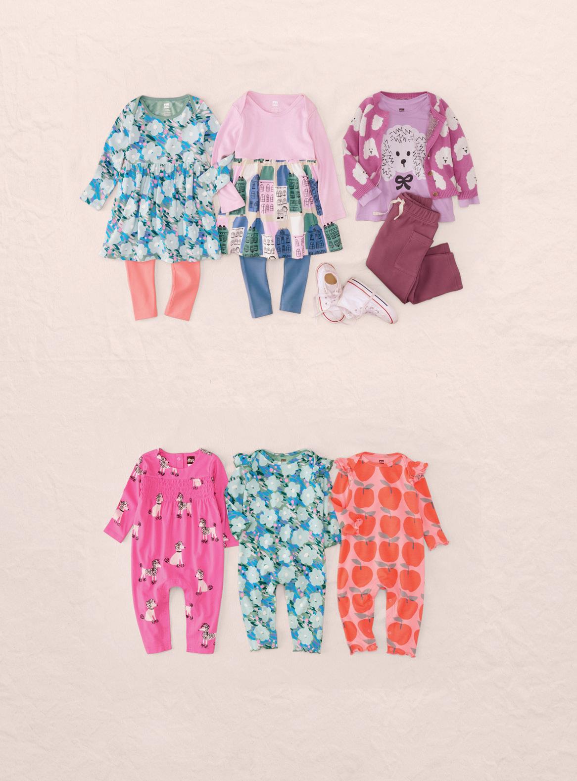 8 A, B D, E B, C B, E C, D A, D A. Odile Ferraille Collab Tee $29 23F12126 3–6M thru 12 B. Stretchy Everyday Joggers $39 23F12230 3–6M thru 16 C. Ruffle Shoulder Henley Top $39 23F12144 2–16 D. Flare for Fun Pocket Pants $39 23F12215 2–16 E. Impressionist Bunny Graphic Tee $29 23F12122 2–12 all items shown are imported