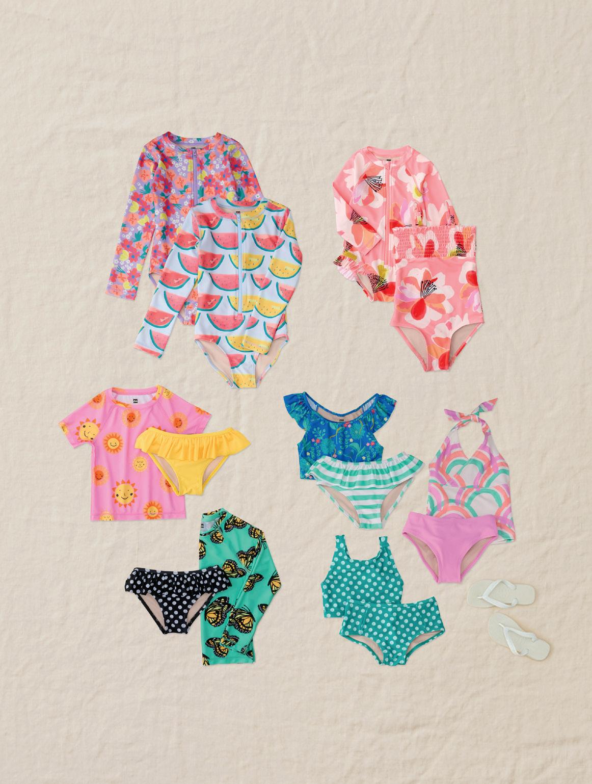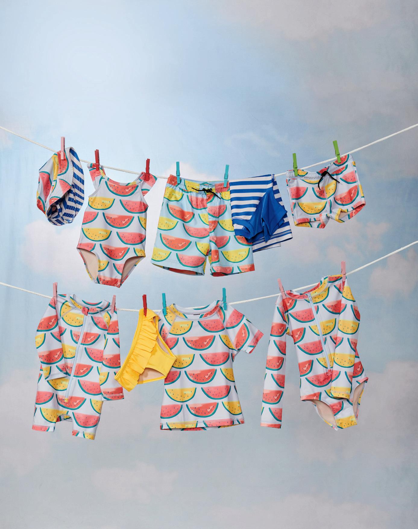 UPF 40+, mix ’n’ match prints, and lots of cool styles mean swimwear they’ll want to dive into!