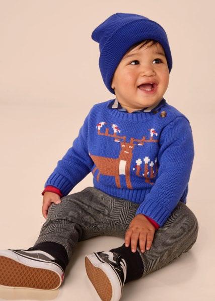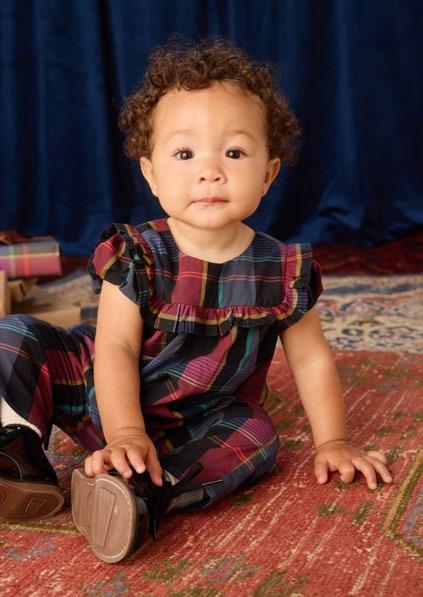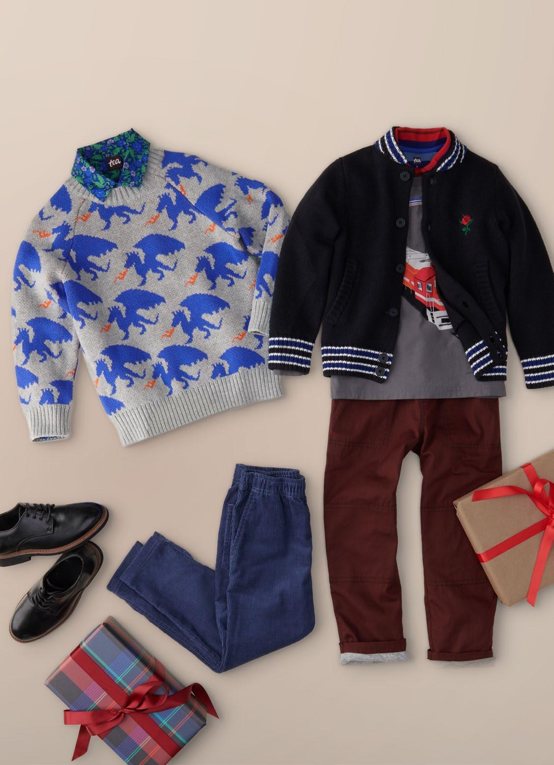 Cozy sweaters and festive rompers are perfect for their first holiday season.
