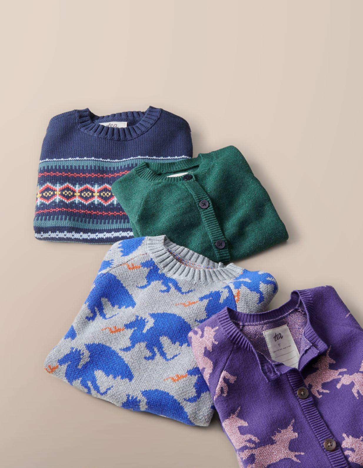 Festive colors, unique prints, and heirloom quality make these sweaters and cardigans a perfect blend of warmth and style.
