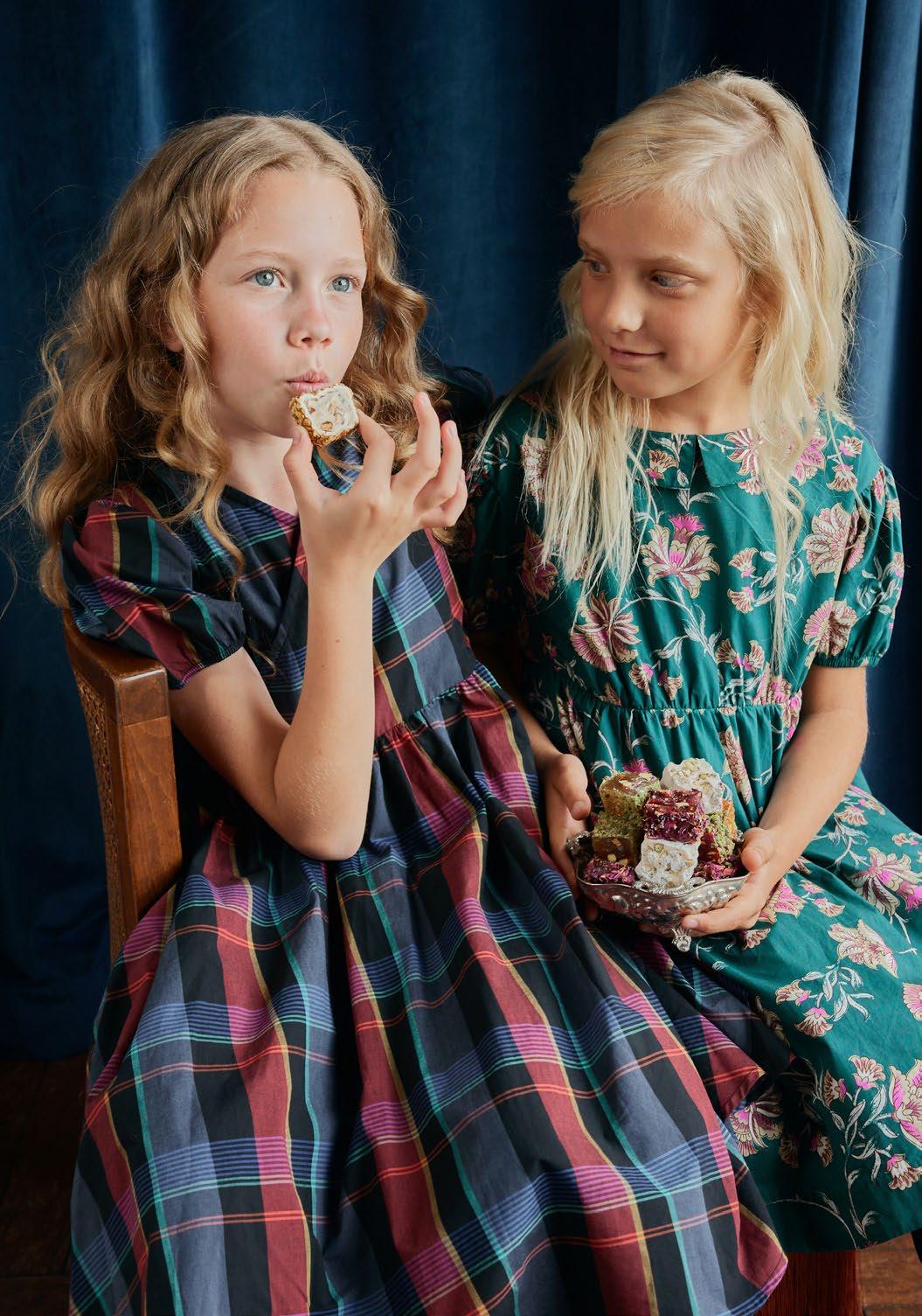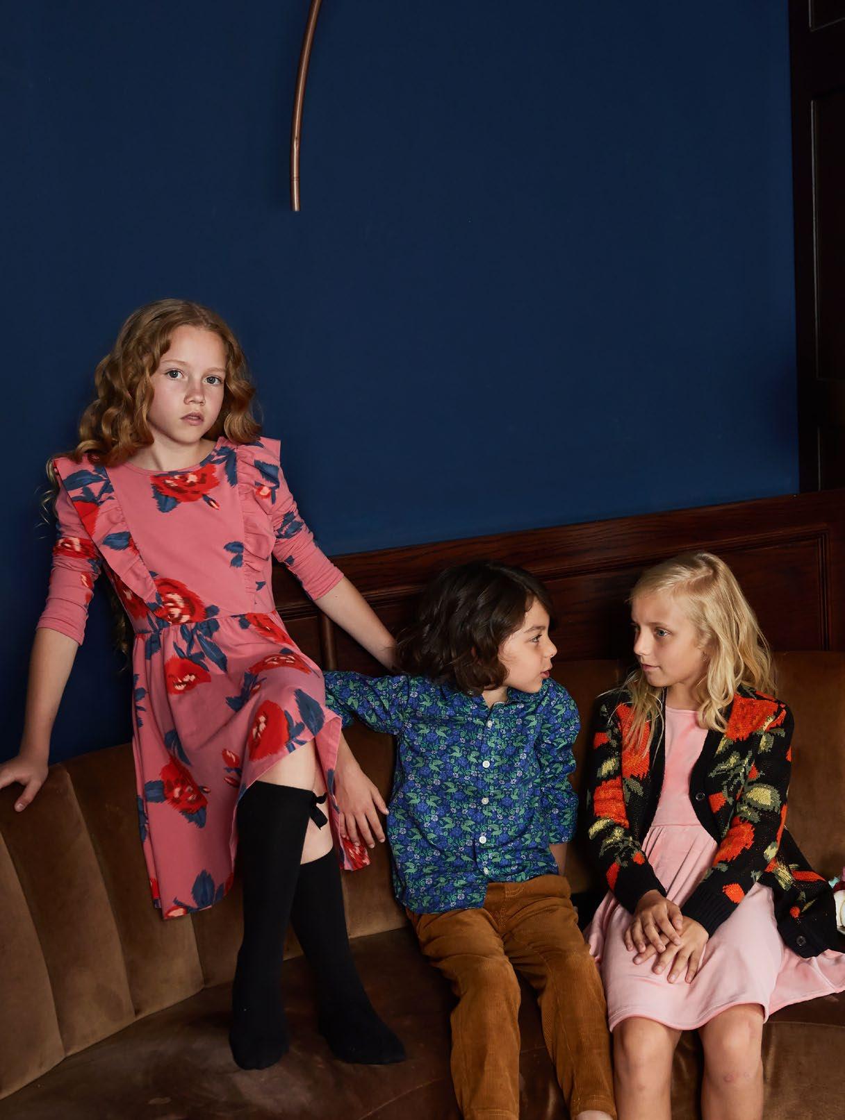 You don’t need to match prints to look coordinated— use similar colors to create a polished, put-together look for the whole family.