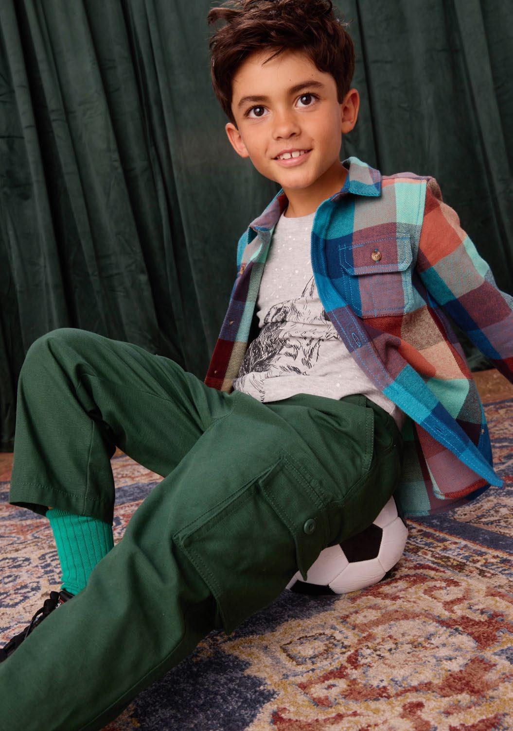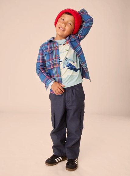 Flannel, twill, and cozy knits come together in outfits that are perfect for winter days, whether they’re out exploring or staying warm inside.