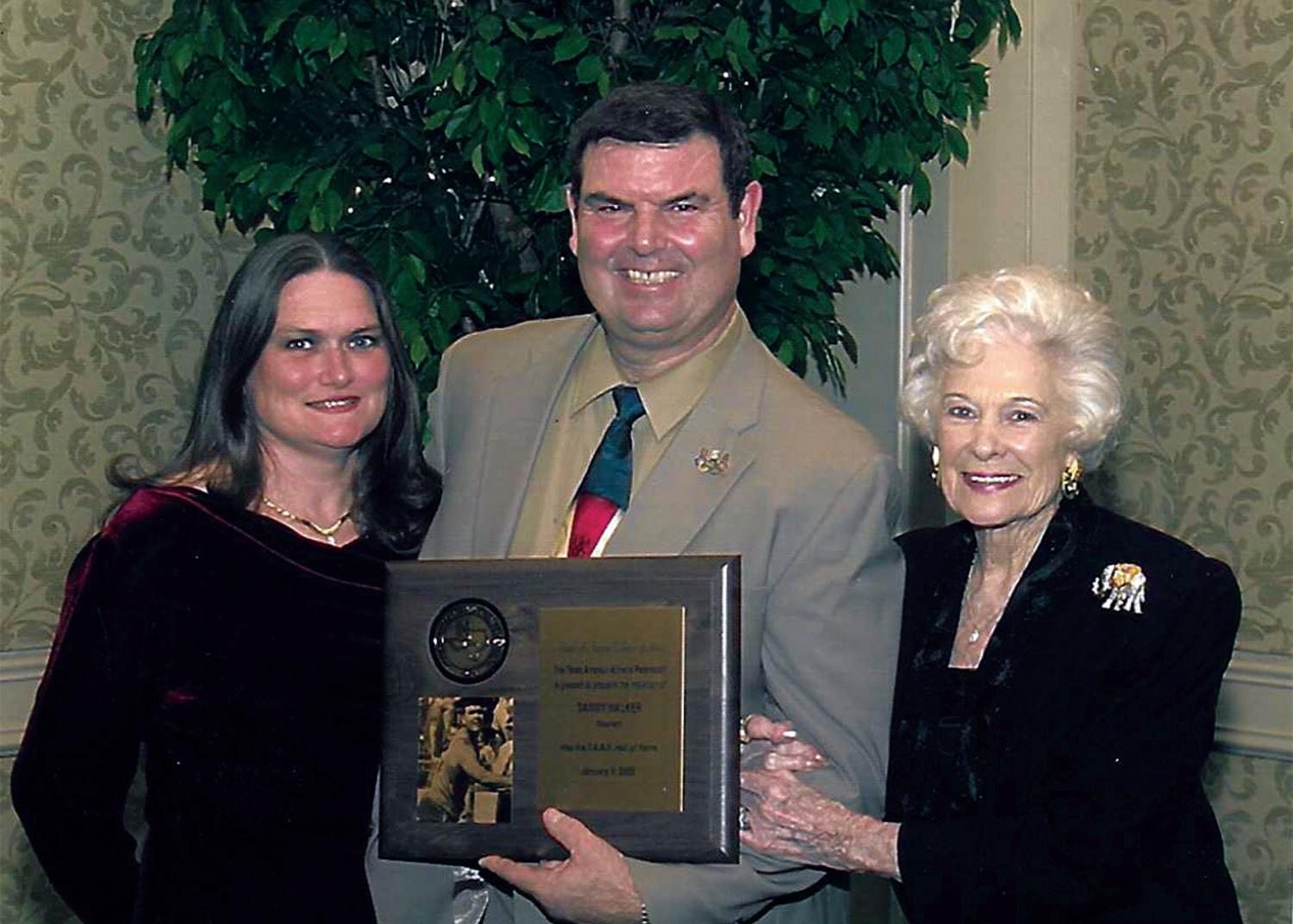 L to R: Lisa Walker, wife of Sammy Walker and Dorothy Franey Langkop celebrate Sammy’s induction into the Texas High School Hall of Fame in 2003. Very special moment.