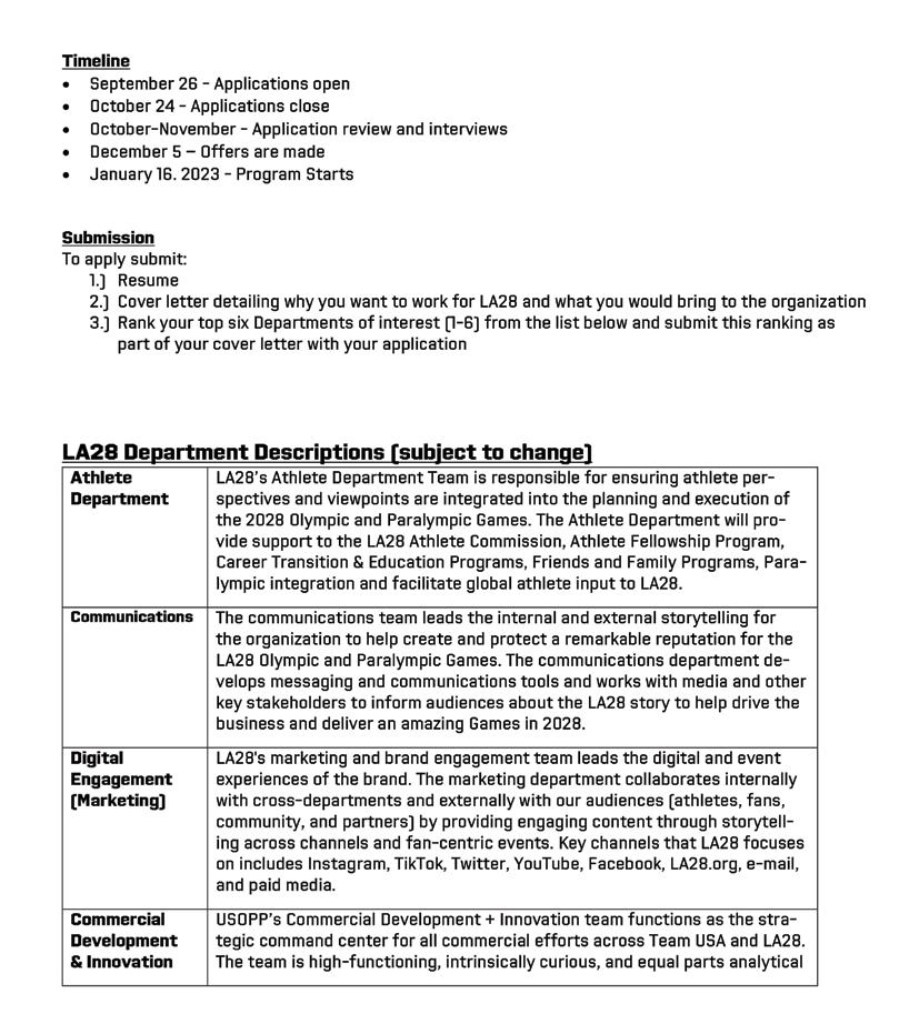 In making this proposal, we are asking the USOPC to recognize that you—our Olympic and Paralympic athletes—are its greatest asset, and therefore worthy of significant investment. If you agree with this statement, I encourage you to show your support in whatever way you can—in emails to USOPC leadership, on social media, and through your local chapters. Together, we will make positive changes! Yours