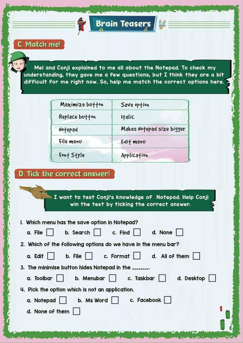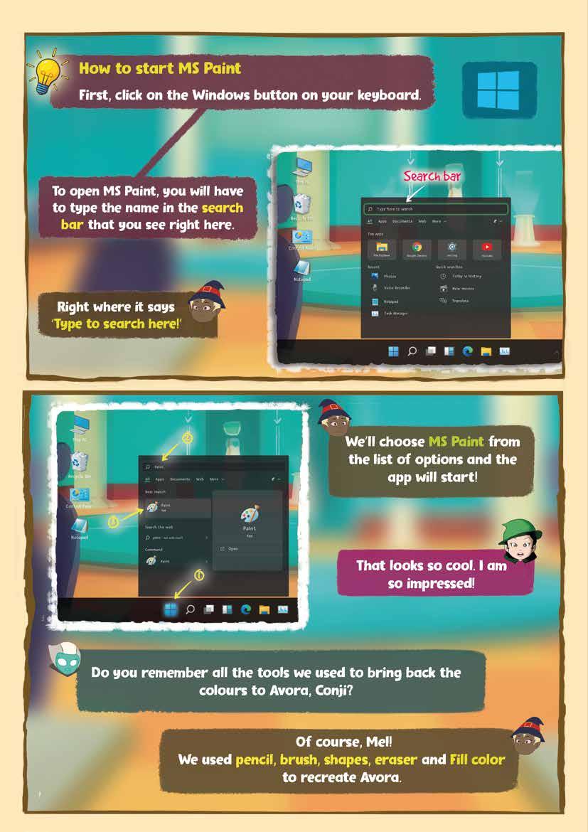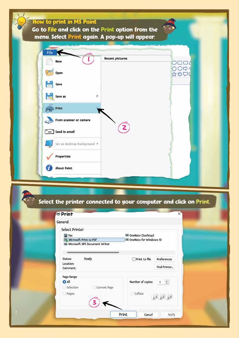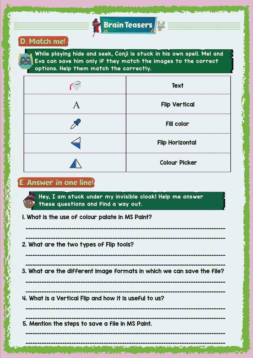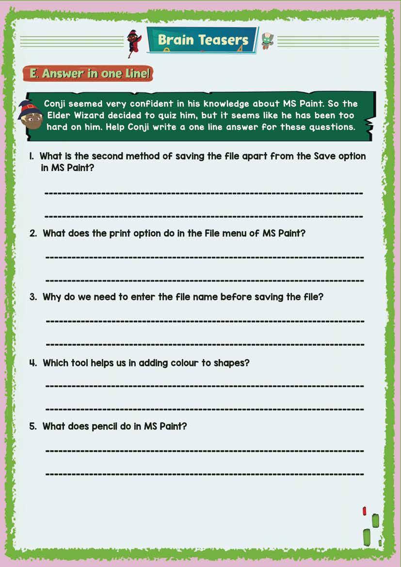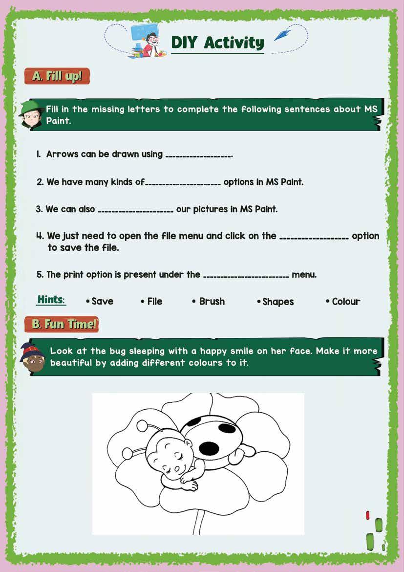- Pencil, Brush, Shapes, Eraser, Fill Color - Saving and printing a file