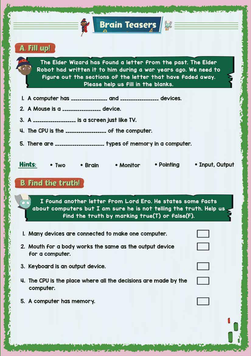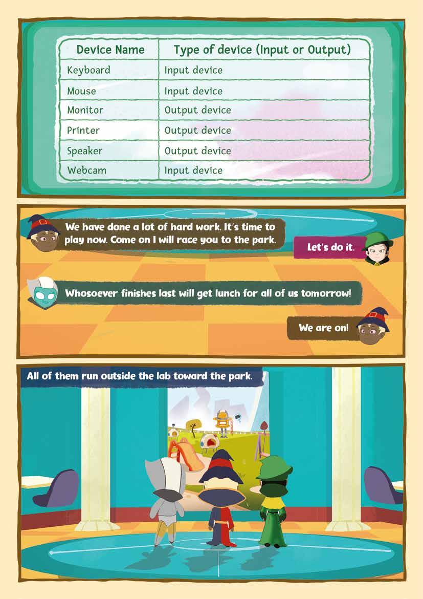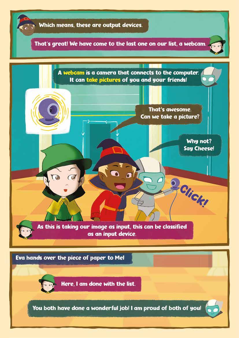 - What are input and output devices - Keyboard, mouse, webcam as input devices - Monitor, Speaker, Printers as output devices - CPU and its parts