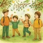 (a) The children were happy. (b) They had heavy bags. (c) The place was beautiful.