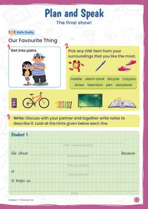 • Tech Integration: the book works in sync with the digital world, where various other activities and projects are undertaken. Learner outputs are evaluated through an AI-based speech recognition engine.