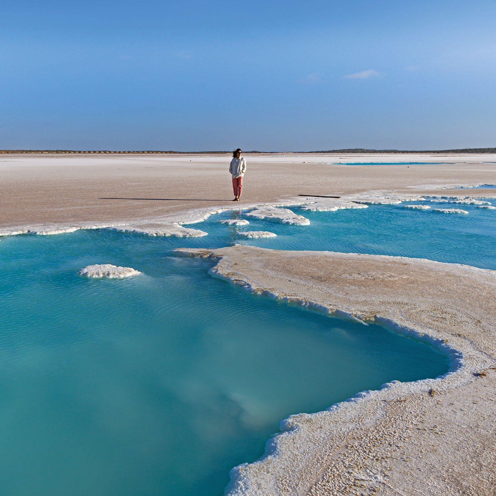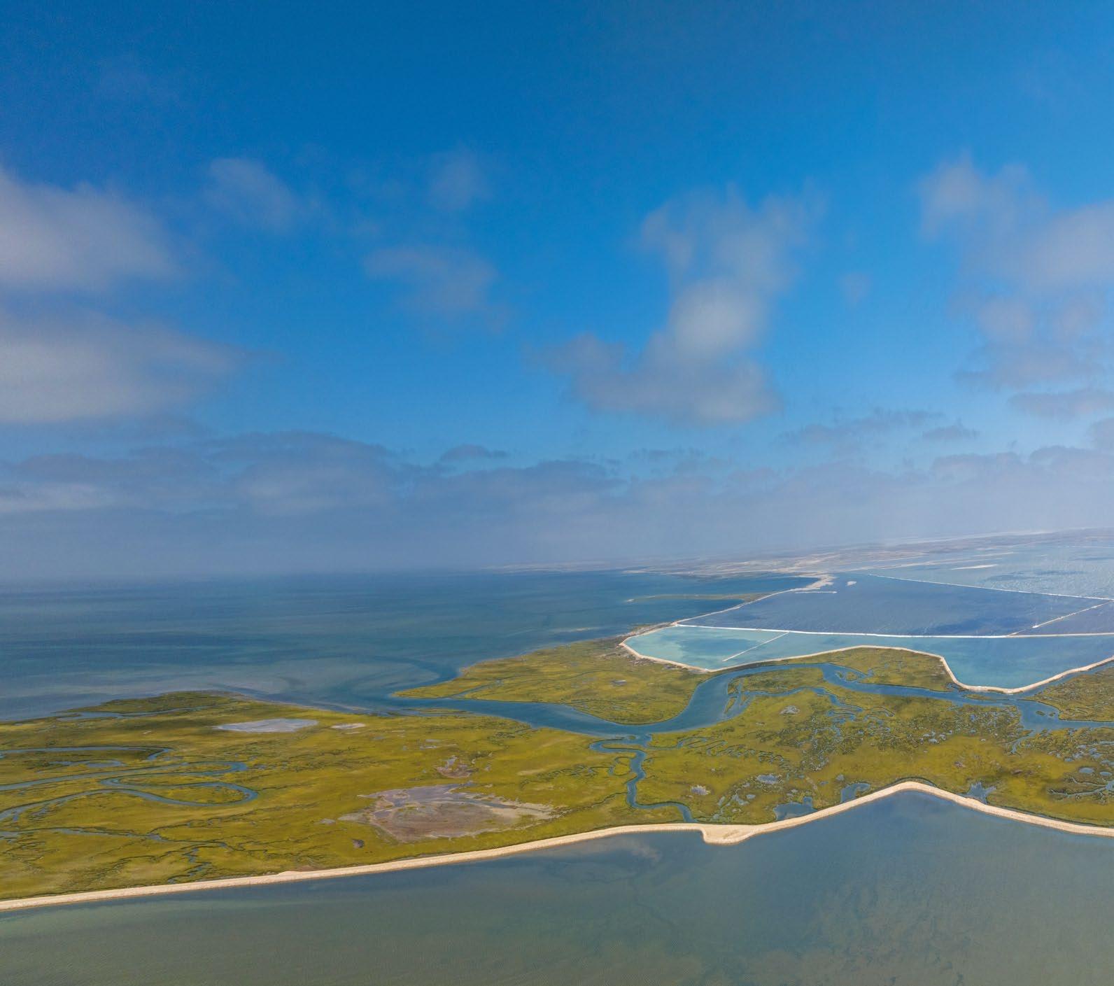 El color del agua que rodea a la Exportadora de Sal es sorprendente. Un turquesa surrealista brilla bajo el cielo y rodea la salinera más grande del mundo que produce 7.18 millones de toneladas de sal por año. La salinera tiene una extensión de 281km2 de vasos de evaporación o áreas de concentración y 30km2 en vasos de cristalización en los terrenos bajos adyacentes a las lagunas Ojo de Liebre y Guerrero Negro.