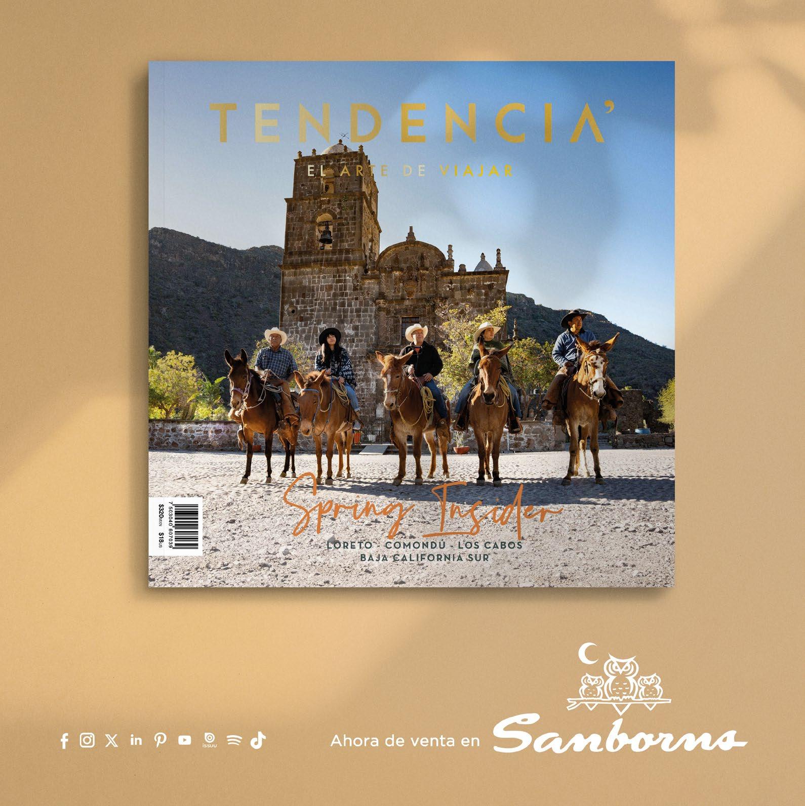TENDENCIA EL ARTE DE VIAJAR, Año 2024, No. 64, Junio 21 a Septiembre 20, 2024, es una publicación trimestral editada por Pleamar Cultural, S. de R.L. de C.V., Hidalgo S/N Local 3 entre V. Carranza y A. Obregón, Col. Matamoros, Cabo San Lucas,Baja California Sur, CP 23468, teléfono (624) 104-3516, http://www.tendenciamagazine.com/.Editor responsable: Claudia Veronica del Pino Peña. Reservas de Derechos al Uso Exclusivo No. 04-2012-101712221000-102. ISSN: En trámite; ambos otorgados por el Instituto Nacional del Derecho de Autor. Licitud de Título y Contenido No. 15906, otorgado por la Comisión Calificadora de Publicaciones y Revistas Ilustradas de la Secretaría de Gobernación. Impresa por SMARTPRESS VISION SA DE CV, Caravaggio #30 Col. Mixcoac C.P. 03910 Ciudad de México. RFC SVI210518JS4.
