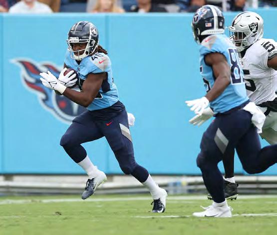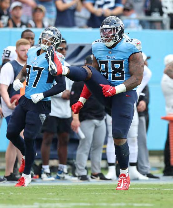 The Titans hosted the Las Vegas Raiders last week and held off a late charge by the visitors for a 24-22 victory. With 1 minute and 14 seconds remaining in the fourth quarter, the Titans stopped a two-point conversion attempt that would have tied the score. Linebacker Dylan Cole got a hand on Derek Carr's pass to tight end Darren Waller on the two-point try, and the Titans recovered the ensuing onside kick to seal the victory.