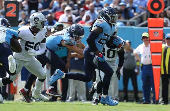 Running back Derrick Henry accounted for 143 scrimmage yards, which included 85 yards on the ground and 58 yards as a receiver. It was his 18th career game with at least 140 scrimmage yards. With a one-yard touchdown run, he joined Eddie George (74) and Earl Campbell (73) as the only players in franchise history to reach 70 total touchdowns.
