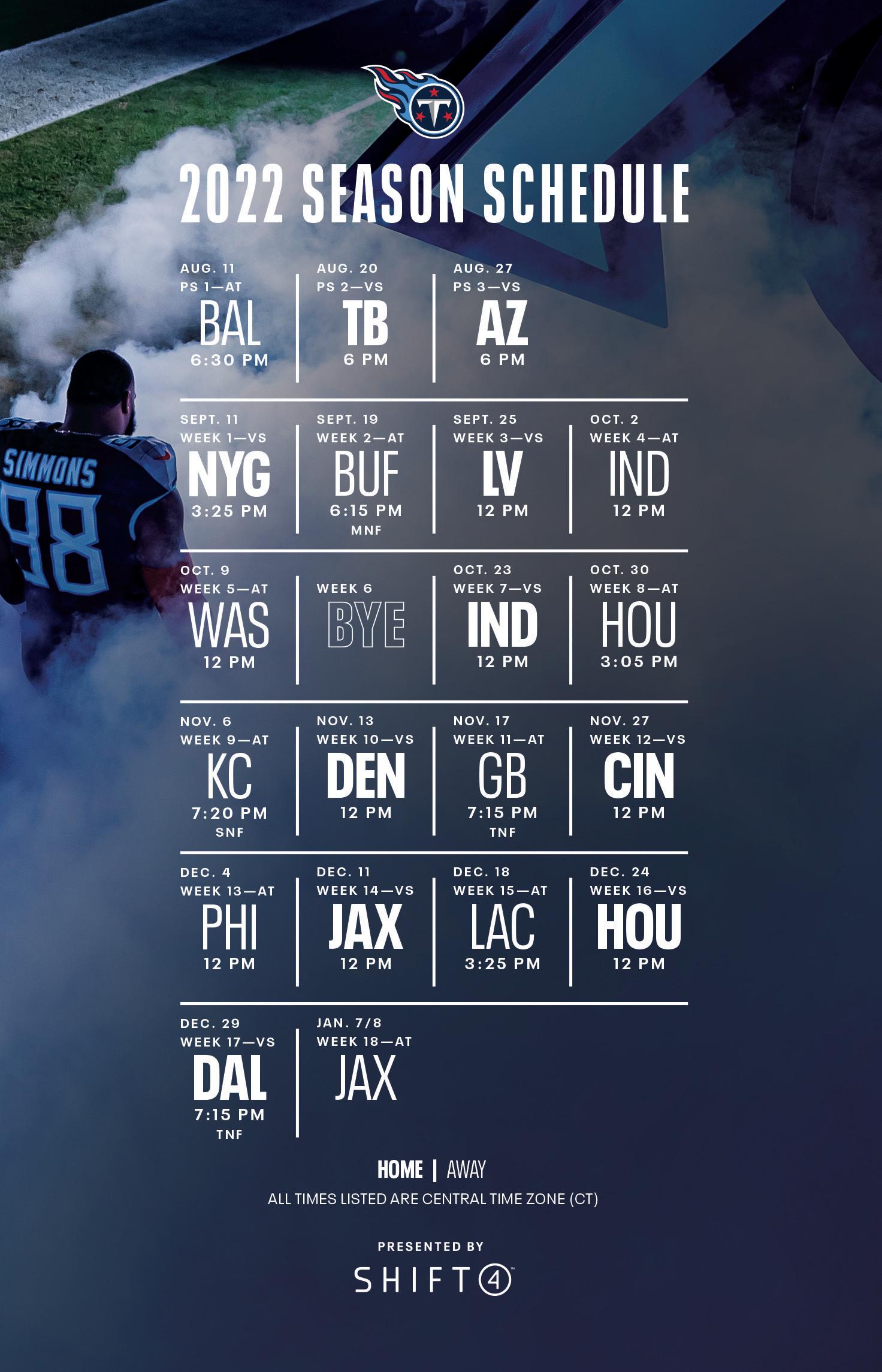 Season Ticket Members, call the Titans Ticket Office at 615.565.4200, option 1, or email tickets@titans.nfl.com.