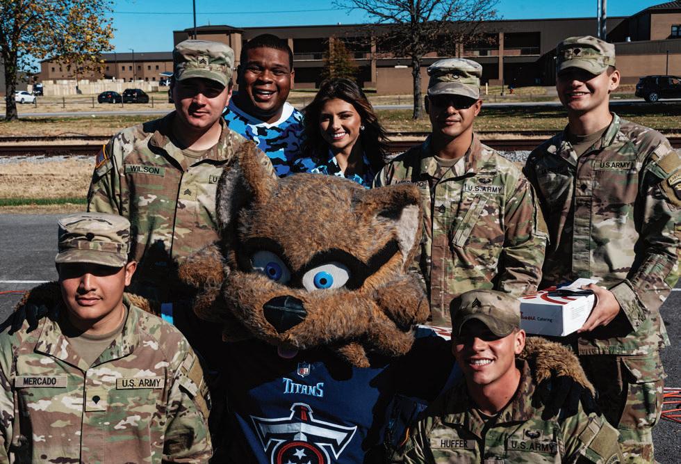 In the 2023 NFL Draft, the Tennessee Titans selected offensive lineman Peter Skoronski as first round pick. The grandson of Green Bay Packers legend and military hero, Bob Skoronski, Peter grew up with a deep love of the game, but also an unwavering passion and admiration for military service. Knowing the NFL Draft was a dream come true both he and his grandfather shared, he opted to leverage the Draft stage as a platform to honor his legacy and celebrate our military. During the week of the 2023 NFL Draft, Peter partnered with USAA to participate in several activations at Whiteman Air Force Base. He rode along in an Army National Guard Black Hawk Helicopter, took a tour of several U.S. Air Force warplanes and held a meet and greet for military personnel on base to sign autographs and interact with service members and their families. He credited his grandfather during this experience who played in the NFL for Vince Lombardi and served in the Air Force. During training camp this year, Chapter 38 of the Special Forces Association was surprised by Peter and Academy Sports with a visit to the Titans practice facility to observe training camp. He took the time to greet the members of Chapter 38 and made a personal connection with the group before surprising them with tickets to the Titans vs. Patriots preseason game.