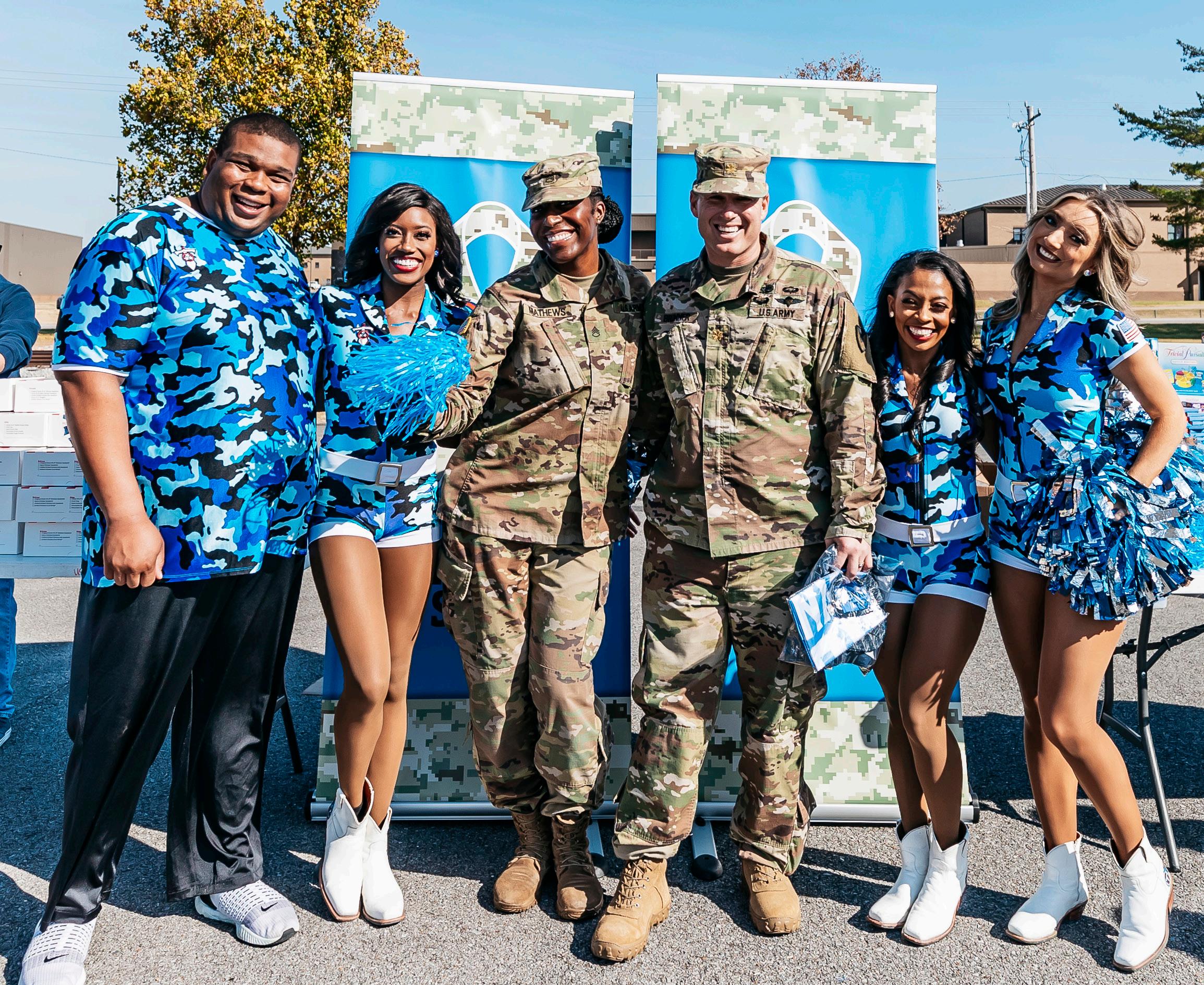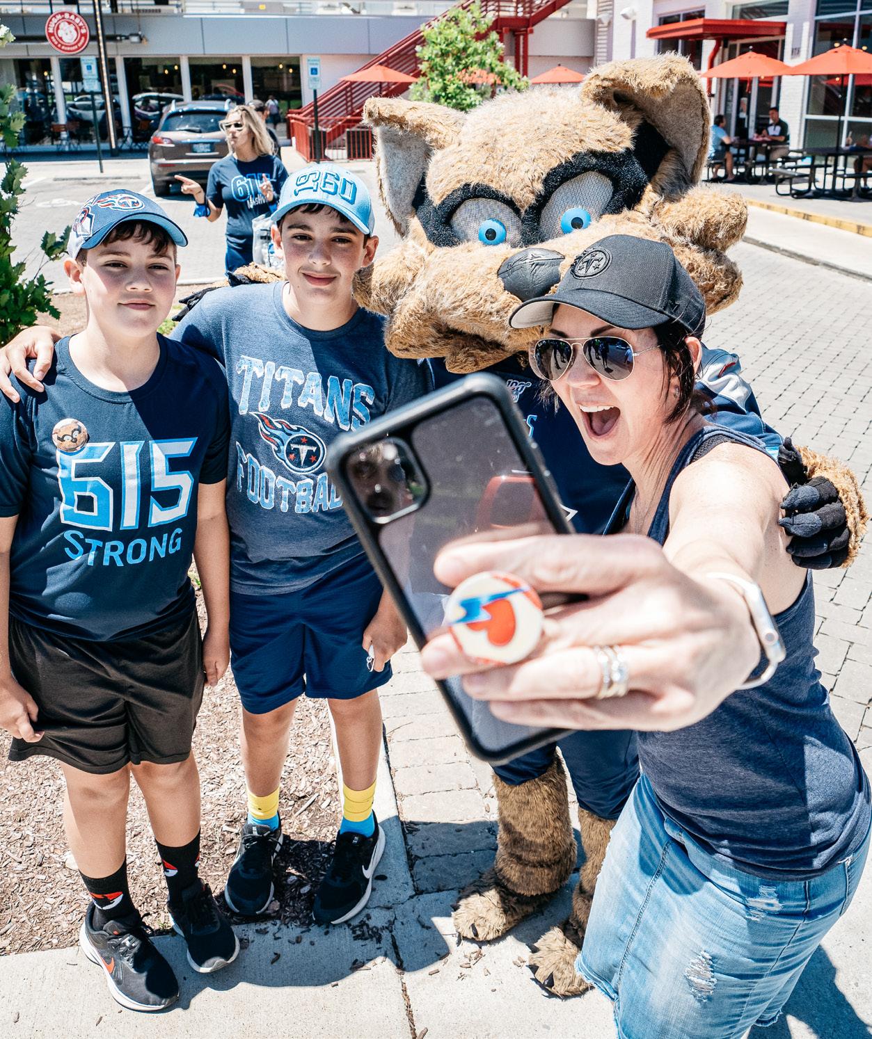 to greet those waiting in line were Titans cheerleaders and mascot T-Rac, as well as mascots from Nashville SC, the Nashville Sounds and Nashville Predators. In addition, the Nashville Convention and Visitors Corp. arranged for live bands to perform throughout the day.