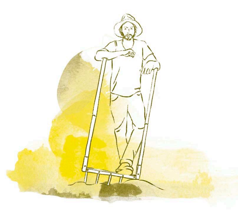 Privilegiare un manico più robusto, in acciaio, e un modello con 3 o 4 denti molto lunghi. Tenere a mente che un modello a 3 rebbi si adatta a più situazioni diverse e può lavorare meglio tra le piante. Nel corso degli anni sono state prodotte alcune varianti della bioforca, con nomi diversi in funzione del brevetto depositato. Ad esempio, tra le bioforche rotanti, la rotogrif rivolta la terra effettuando una rotazione da sinistra a destra. La campagnole (raffigurata nel disegno nella pagina accanto), inventata in Francia da La Fabriculture, è una bioforca con due ruote che ne facilitano lo spostamento e presenta un meccanismo per rompere le zolle che vengono portate in superficie. Ma è anche più cara dell’originale. La bioforca