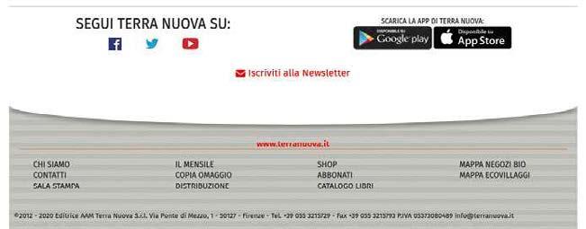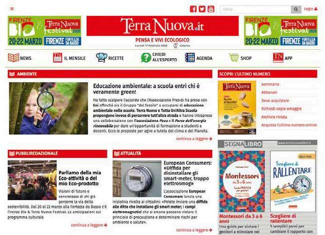 L’interesse suscitato dal portale www.terranuova.it, visitato mensilmente da oltre 275.000 utenti interessati ai nostri argomenti, alle nostre proposte commerciali e alle mappe sulla salute, sulla bioedilizia, sull’ecoturismo e sui negozi bio. Facebook.com/terranuovaedizioni vanta ben 111.000 like!