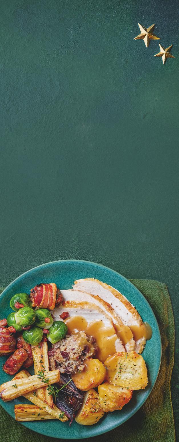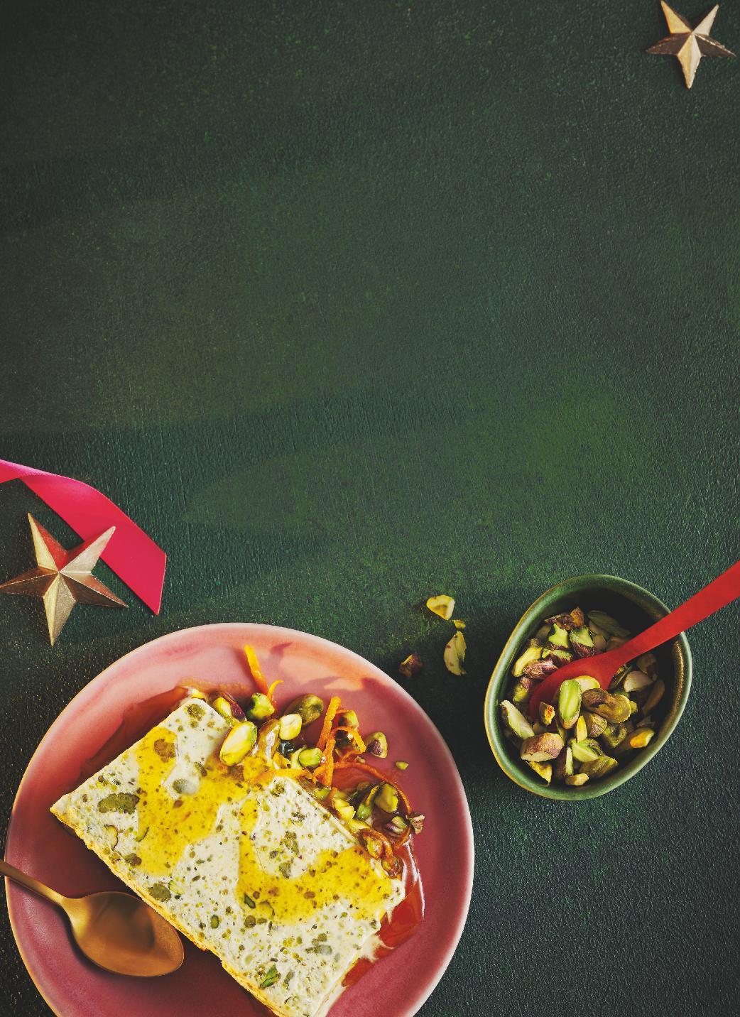 The run-up to Christmas can be as joyous as the main event. But whether you’re a ‘tree up on the 1st’ kind of host (see our decoration ideas on p85), or a night-before-Christmas shopper, once you’ve flicked through this issue you’ll be setting aside a Sunday to make gravy and a show-stopping dessert for the freezer – the Pistachio ice cream terrine, p35, will wow guests! Keep hold of the issue for its handy turkey guide, p43. Now’s also a good time to think about the drinks cupboard. Get a few bottles in to hide away for later – check out our drinks guide, p51. Feed your Christmas spirit and get planning!