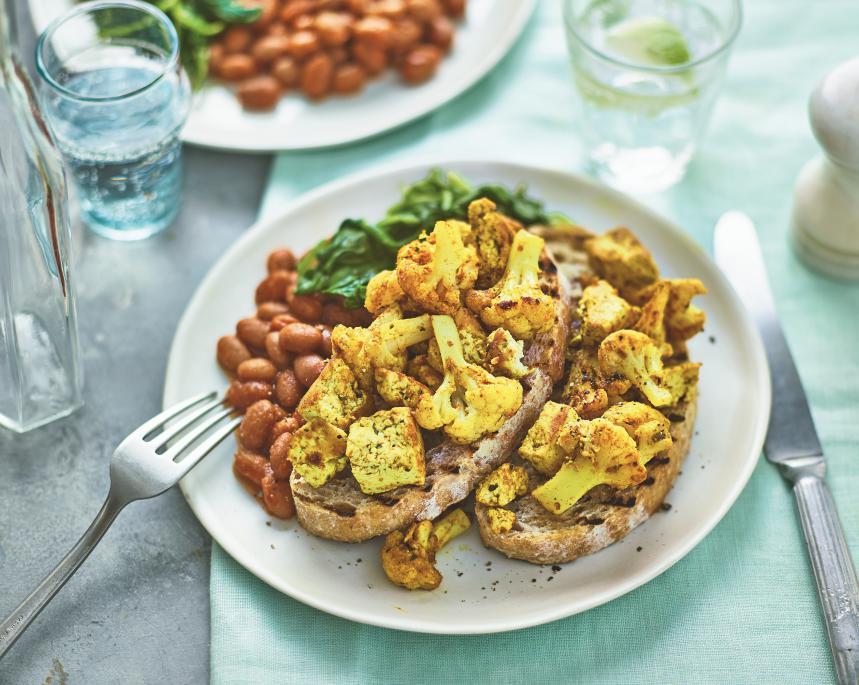 Cauliflower & tofu scramble with quick baked beans on toast 87