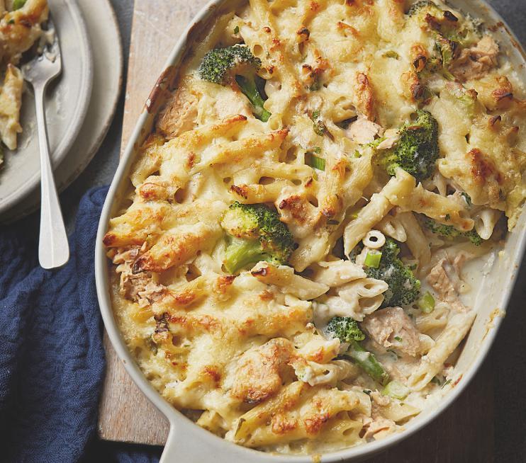 3 Transfer the mixture to a 20 x 30cm baking dish, scatter over the cheese, then bake for 25-30 mins until golden brown and bubbling. Leave to stand for 5 mins before serving. Each serving contains