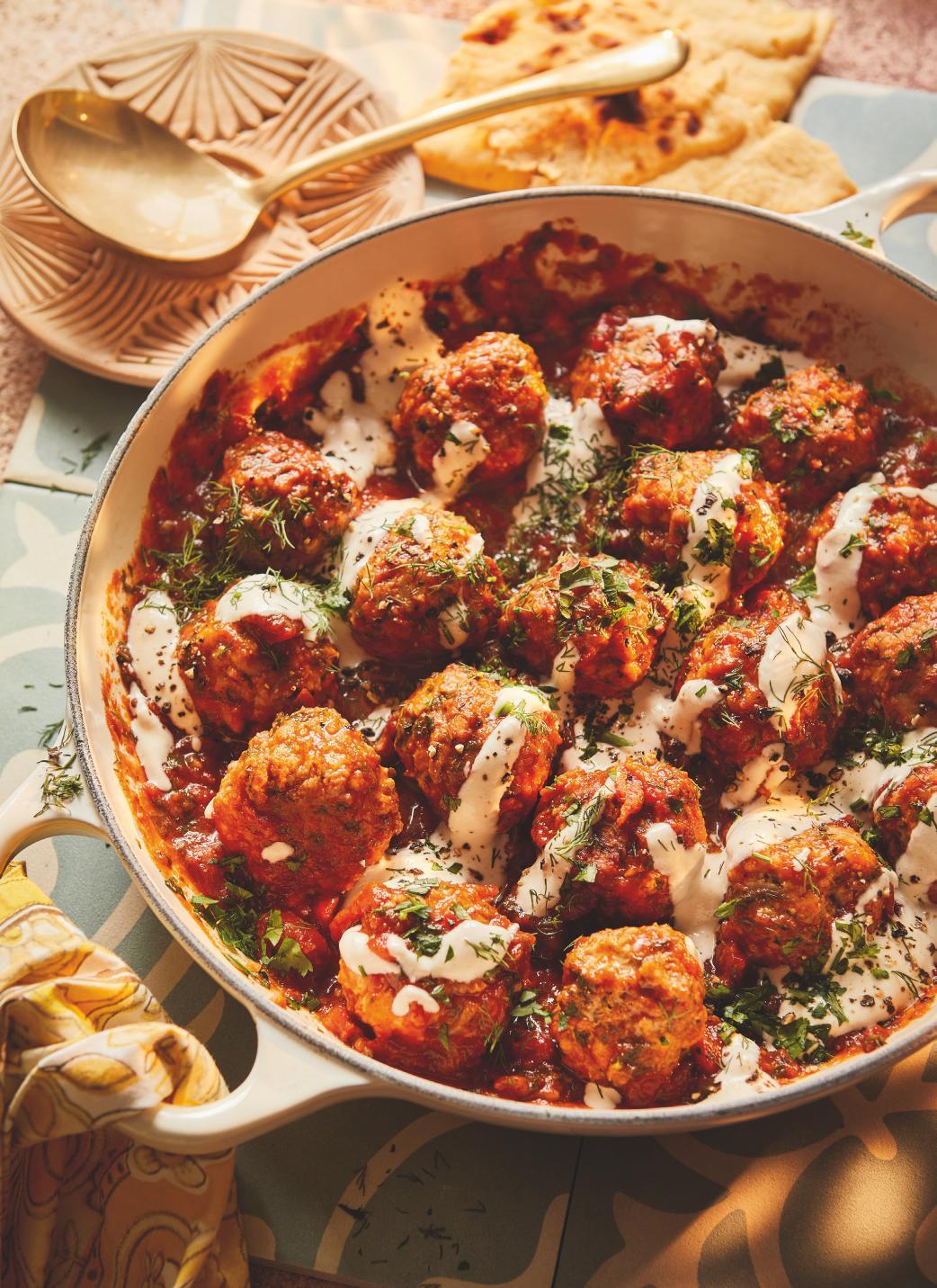COVER RECIPE Spiced chicken meatballs with garlic tomato sauce, p42