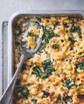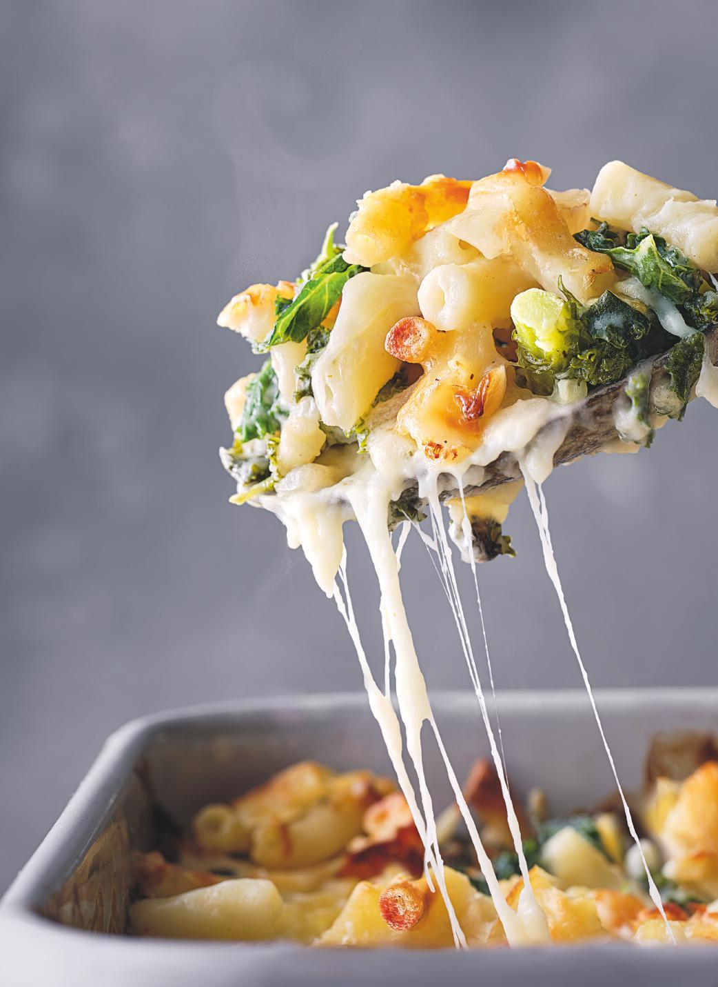 This comfort-food staple has been on quite a journey – paired with lobster, infused with truffle... Our spin is still humble and cheesy, but has been freshened up with the addition of kale.